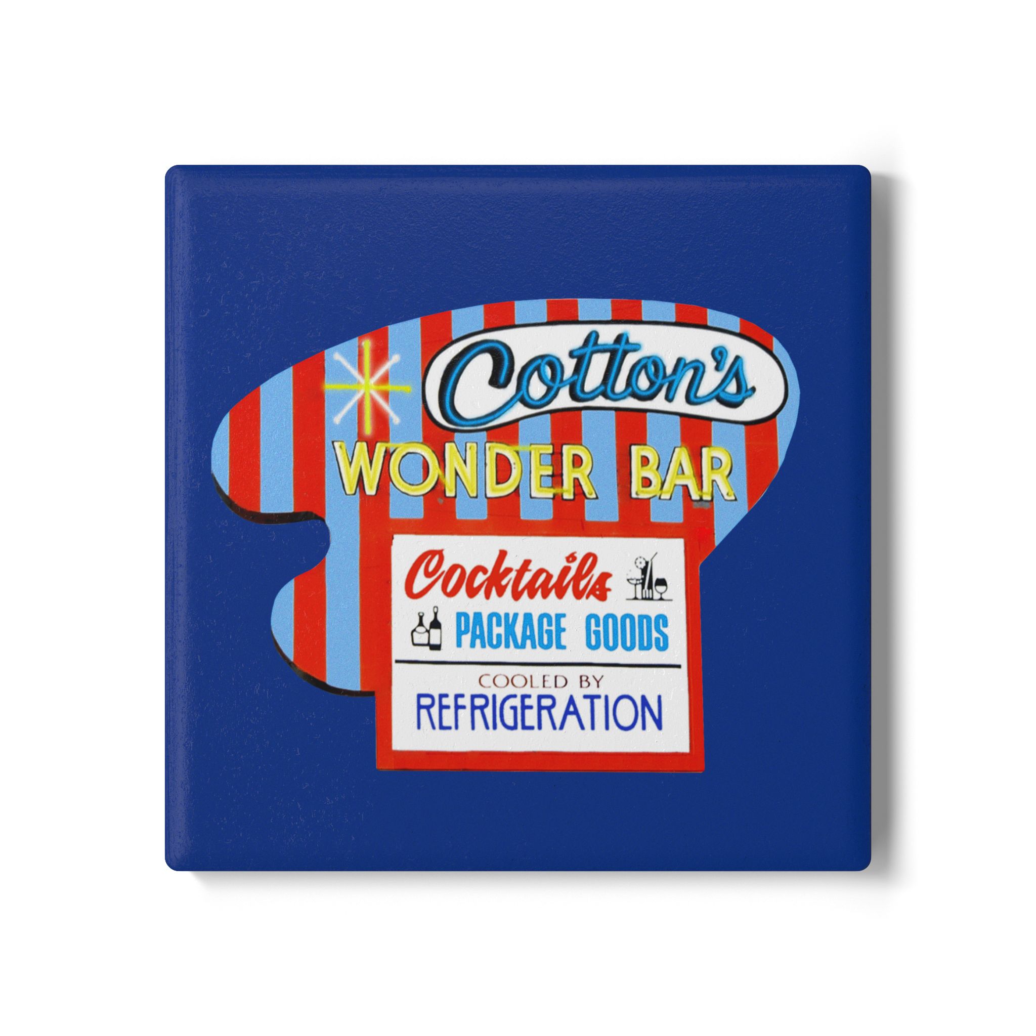 Cotton’s Wonder Bar retro vintage sign ceramic coaster adds a touch of nostalgia and charm to your home decor. Perfect for those who appreciate vintage aesthetics and enjoy sipping their favorite hot or cold drinks in style. Ideal for collectors of retro memorabilia and those looking to protect their furniture while adding a unique touch to their home.