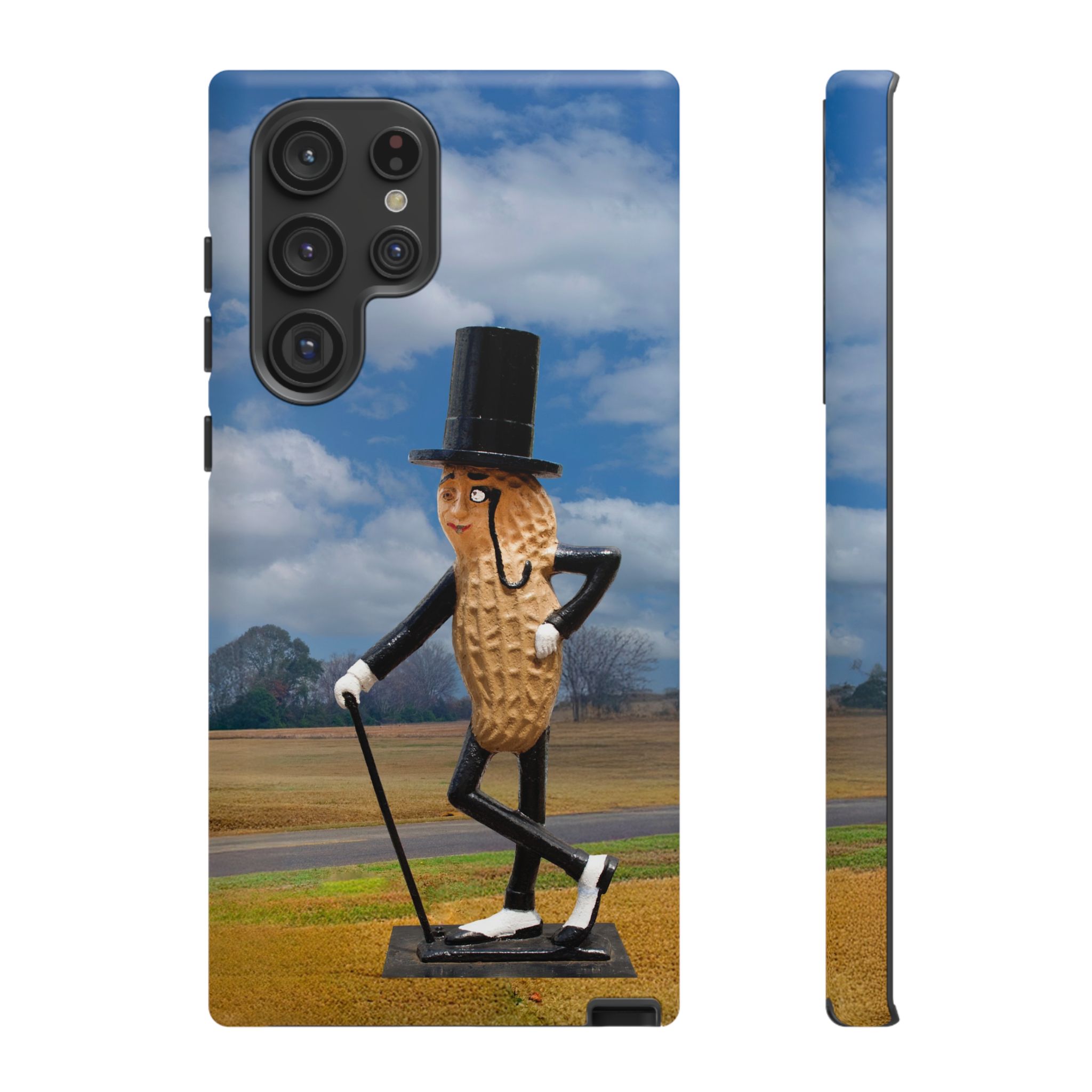 Mr. Peanut wearing a top hat design Phone tough phone case, iPhones and Samsung Galaxy phones, providing excellent protection against drops and tears. Perfect for adults looking to add a fun and quirky touch to their phone. Ideal for gifting on birthdays, holidays, and special occasions.