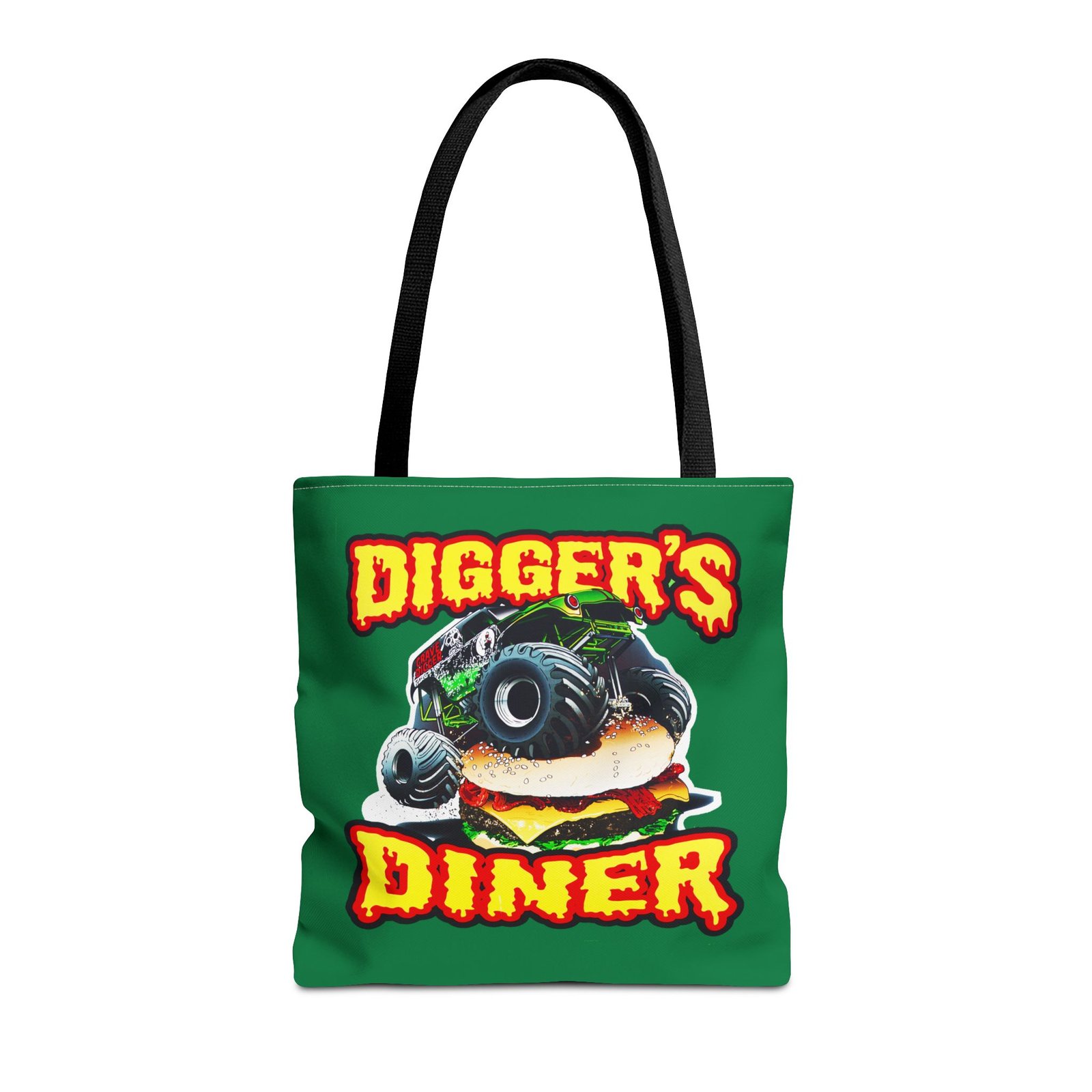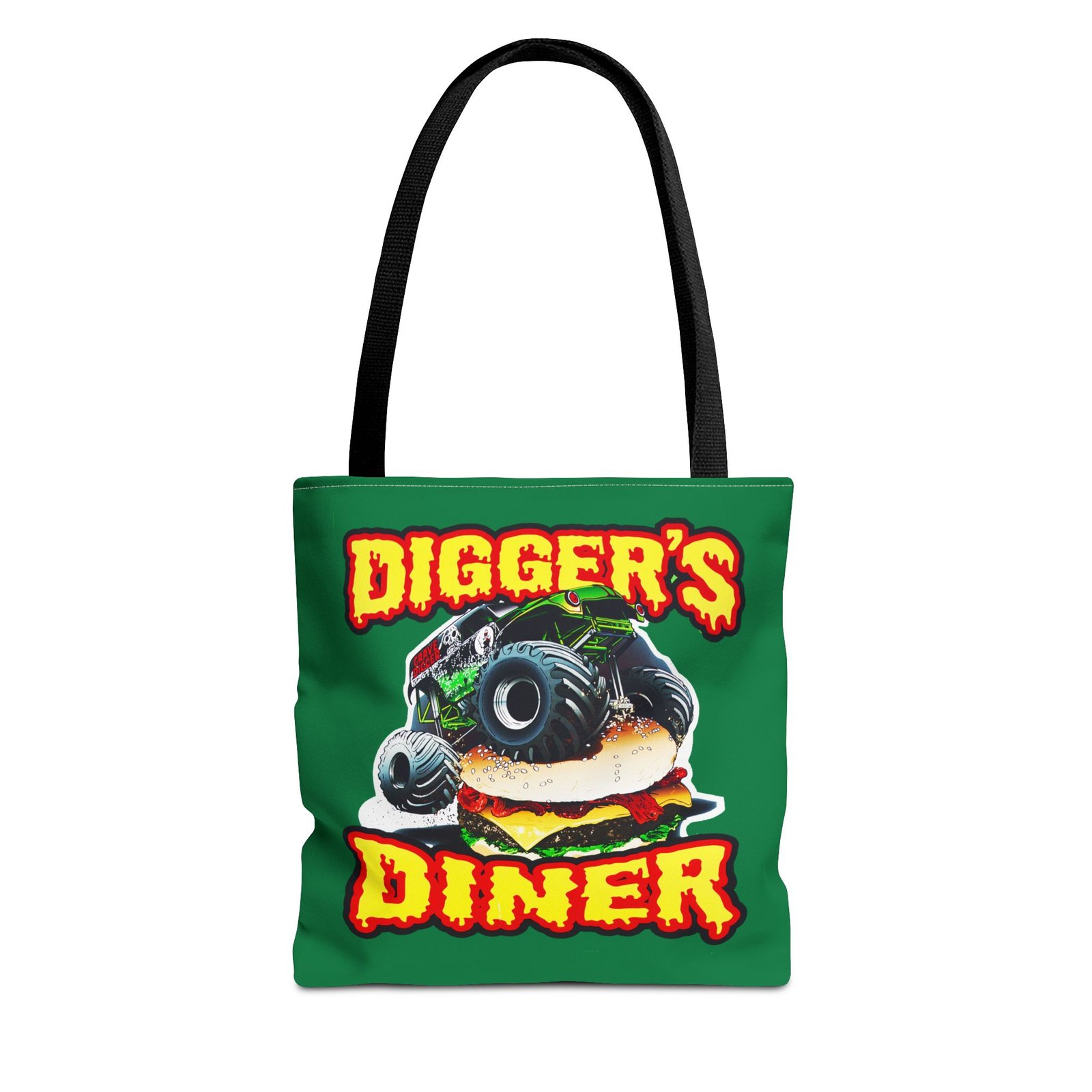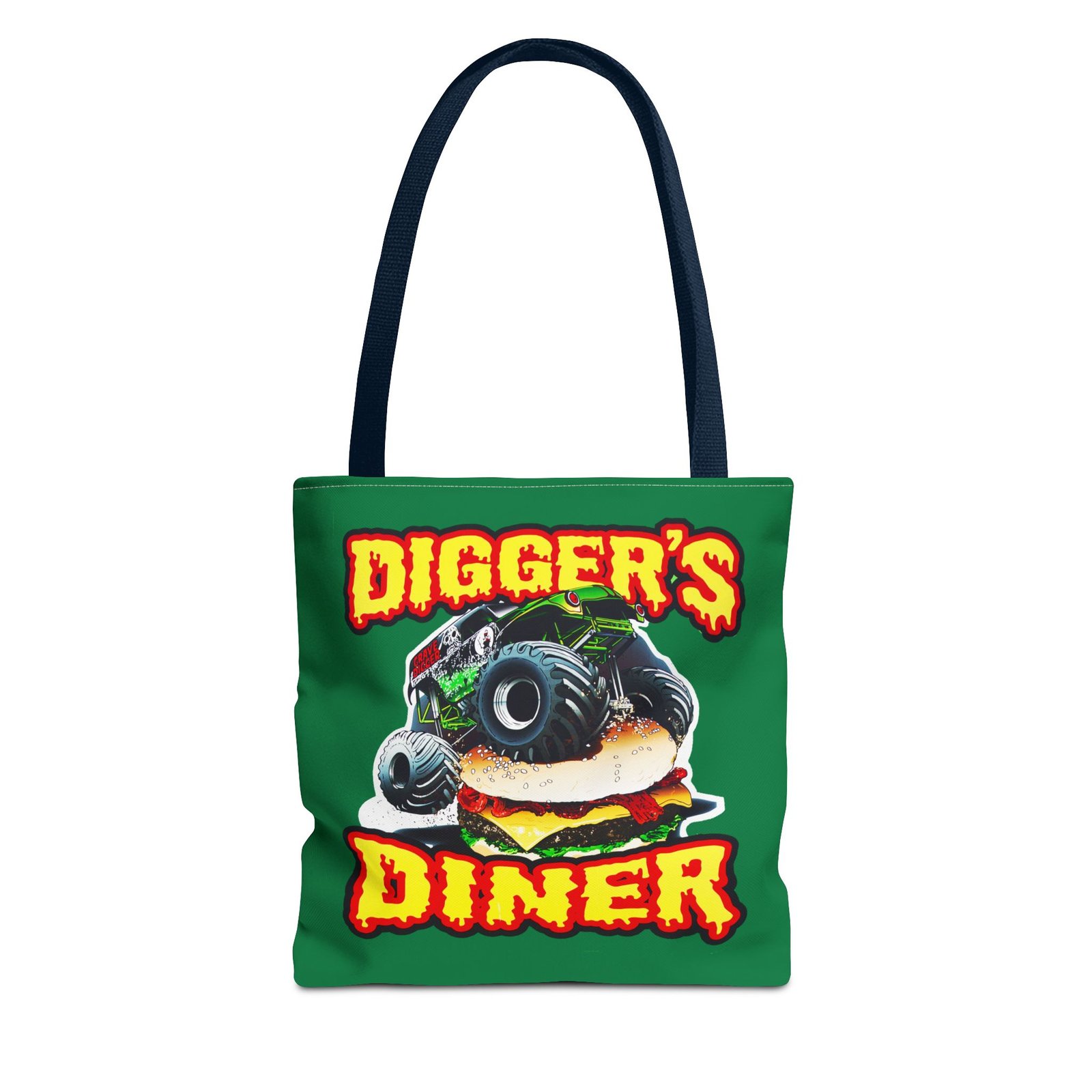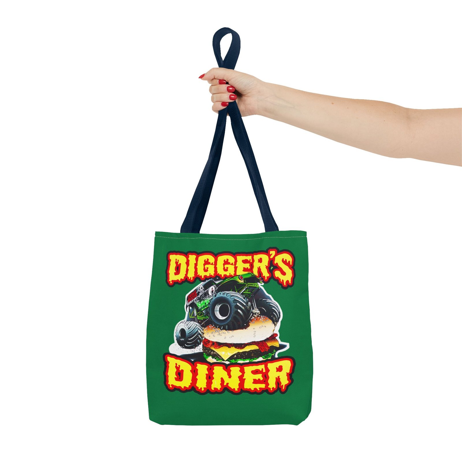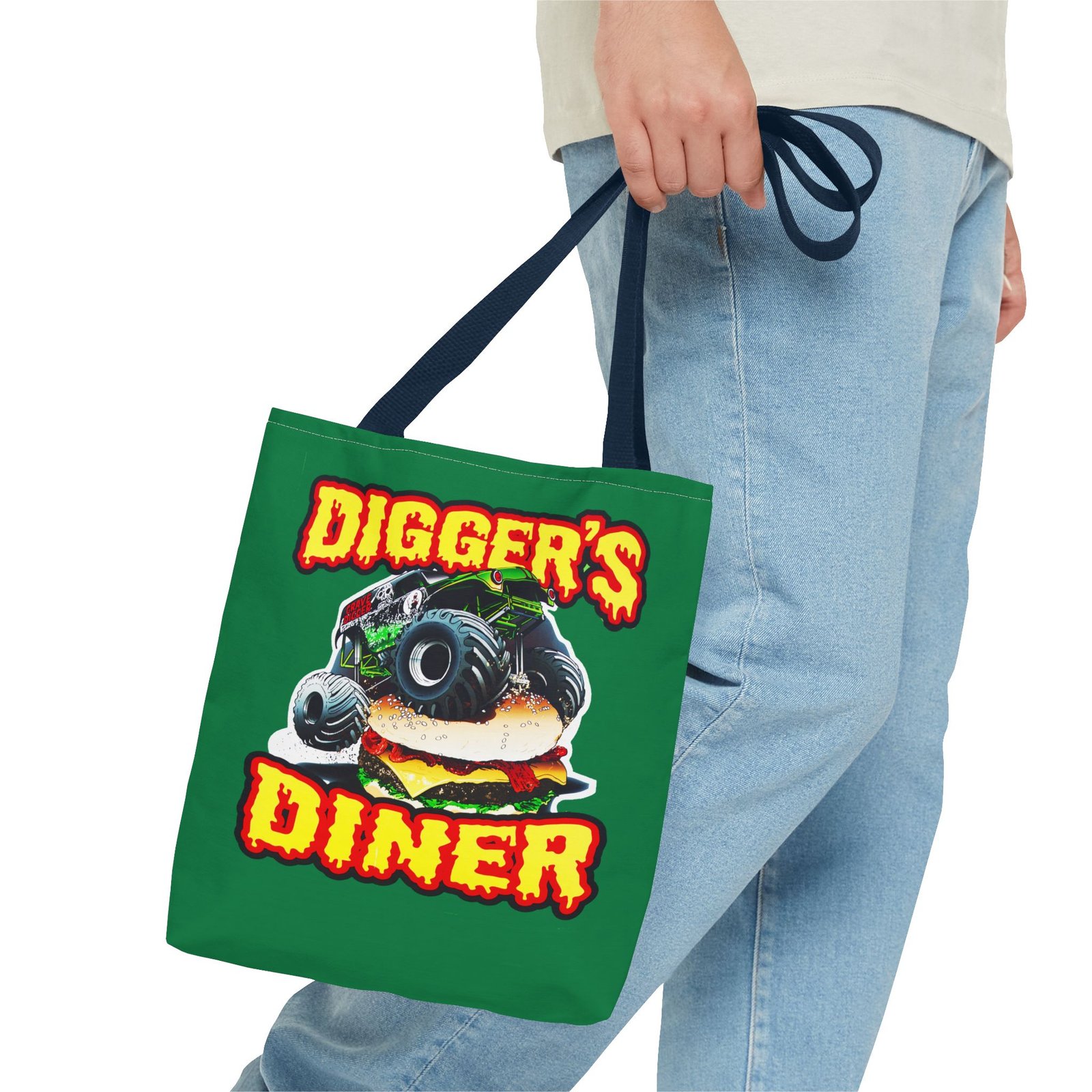 Digger’s Diner Monster Truck Sign Tote Bag, Retro-Themed Tote Bag, Shopping Bag