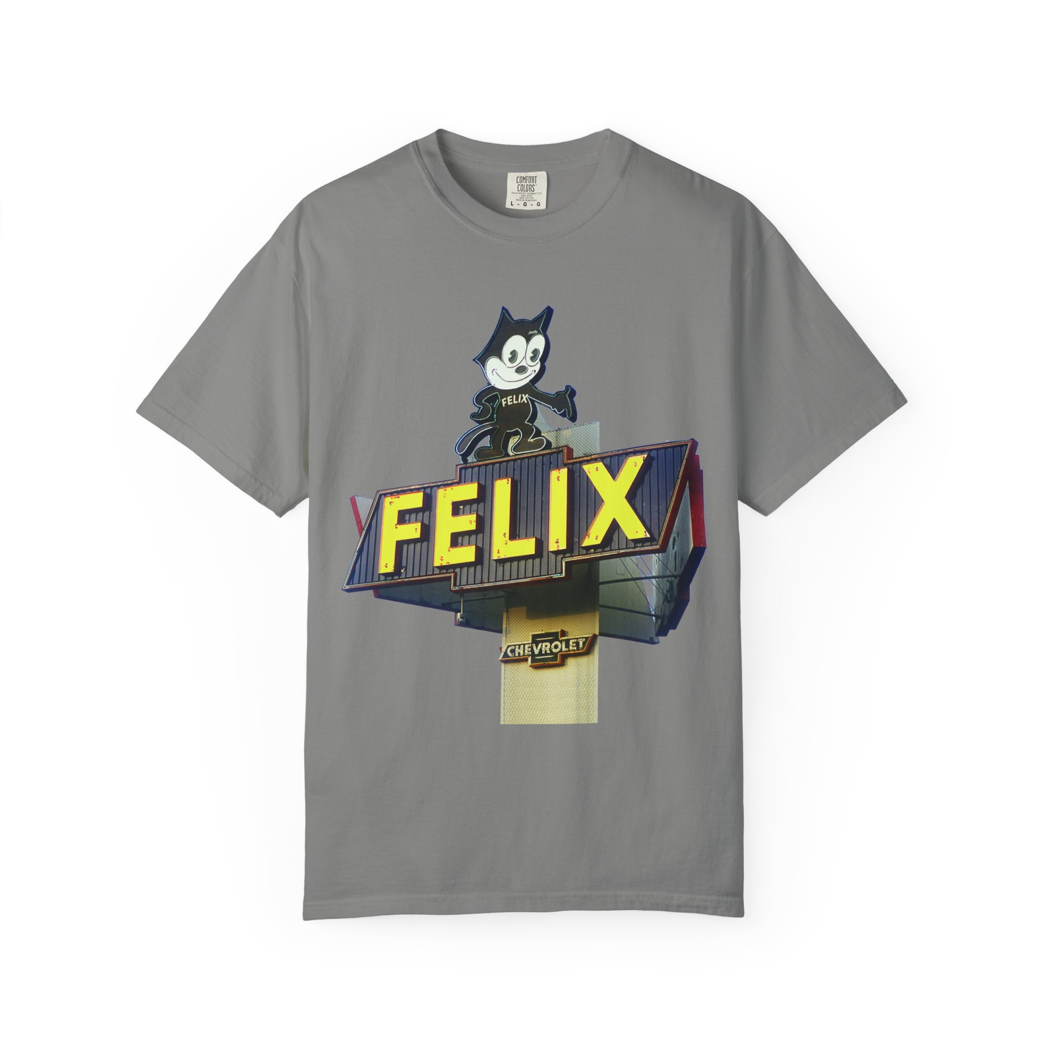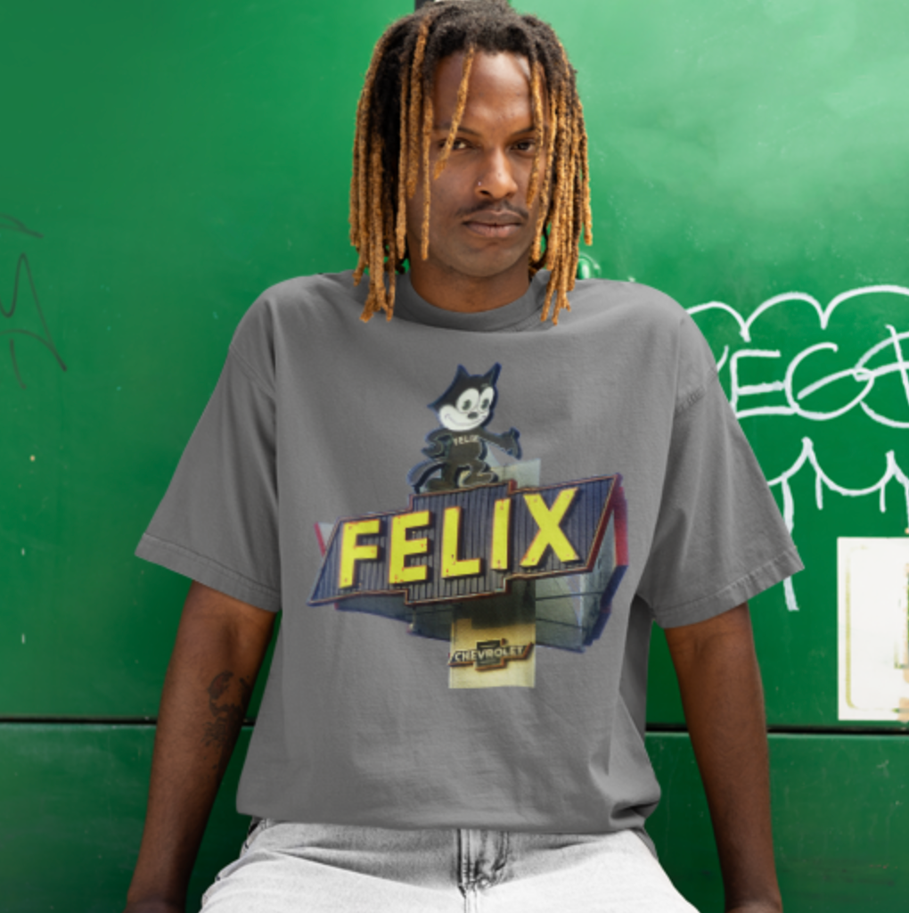 This heavyweight, garment-dyed tee channels vintage road-trip energy with a retro Chevrolet sign and a cheeky Felix the Cat motif. The dense 6.1 oz cotton gives it substantial weight and structure, while the after-construction dyeing produces a lived-in, softly faded hue that feels broken-in from day one. Tubular knit construction and double-needle stitched seams mean the tee holds its shape and ages gracefully, no side seams interrupting the silhouette. Sized from S to 4XL and offered in many colorways, it suits a range of builds and style preferences. Wear it to weekend drives, garage hangs, or whenever you want a little mid-century Americana charm in your rotation.