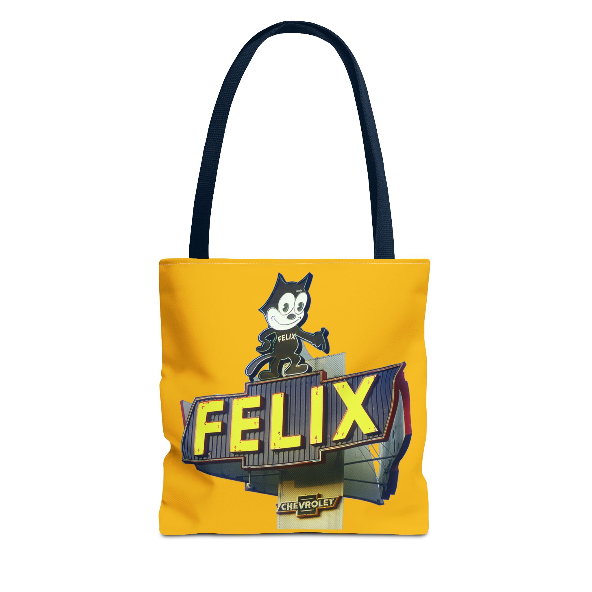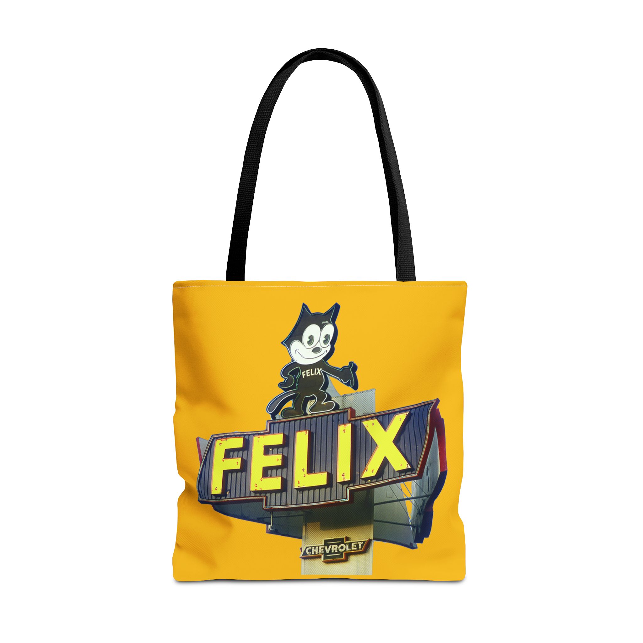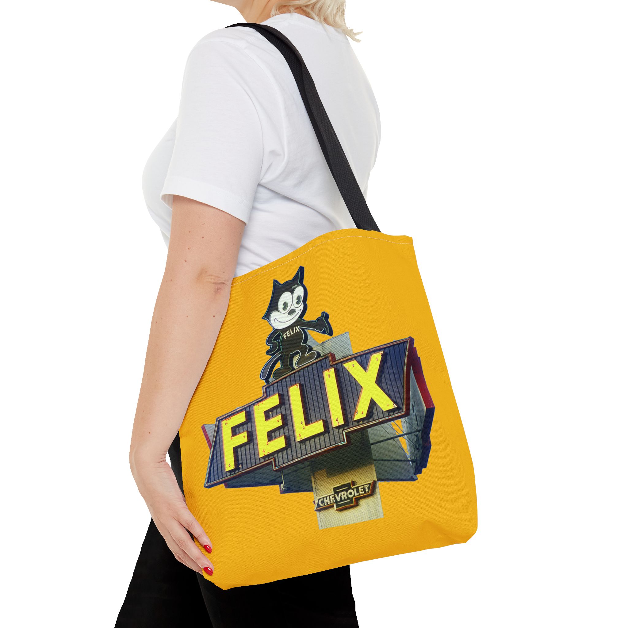 This trendy tote bag features a Felix the Cat sign design, giving off a nostalgic and retro vibe. Perfect for those who love vintage aesthetics and want to add a unique touch to their everyday style. Ideal for anyone looking for a statement piece to carry their essentials in. Great for gifting during holidays and special occasions.