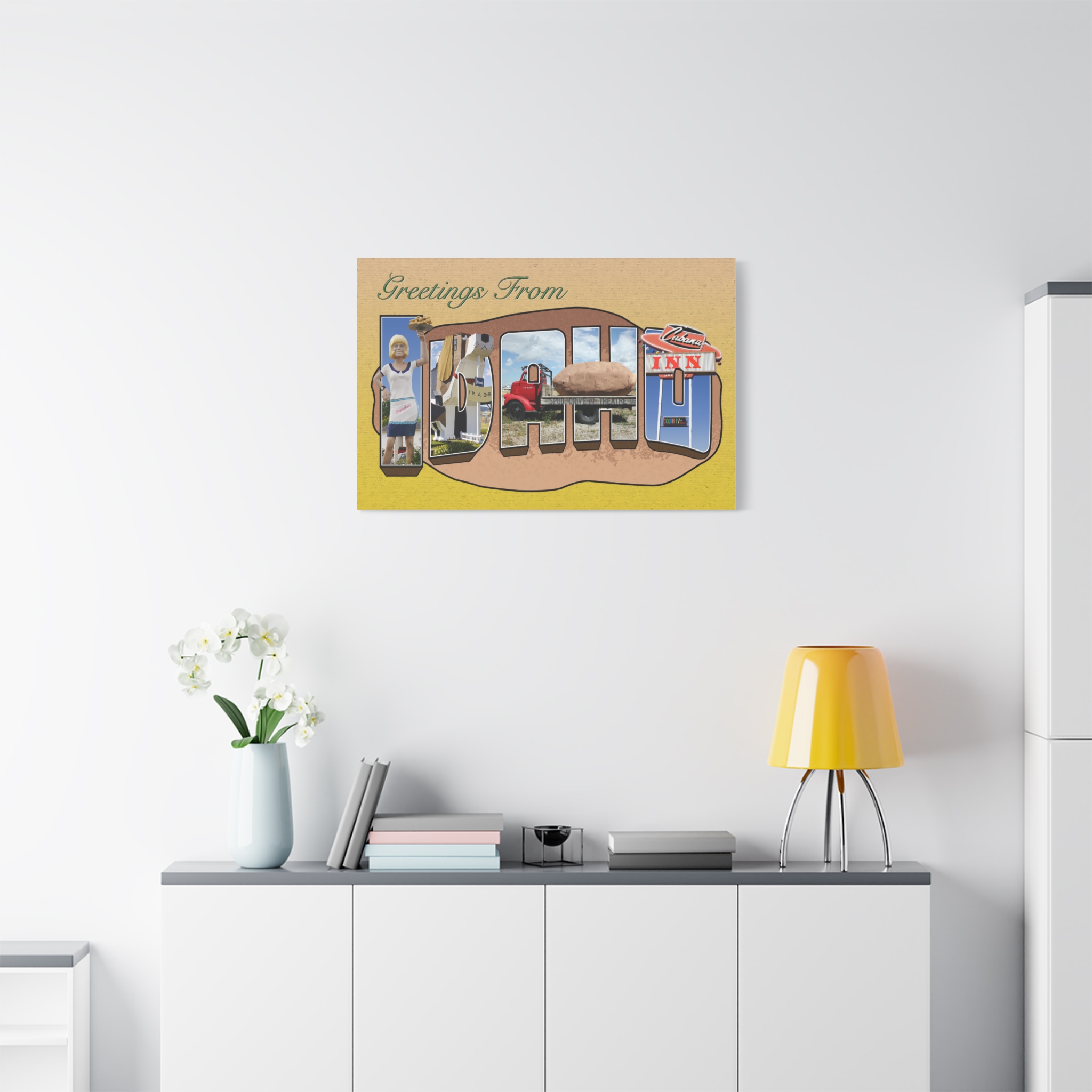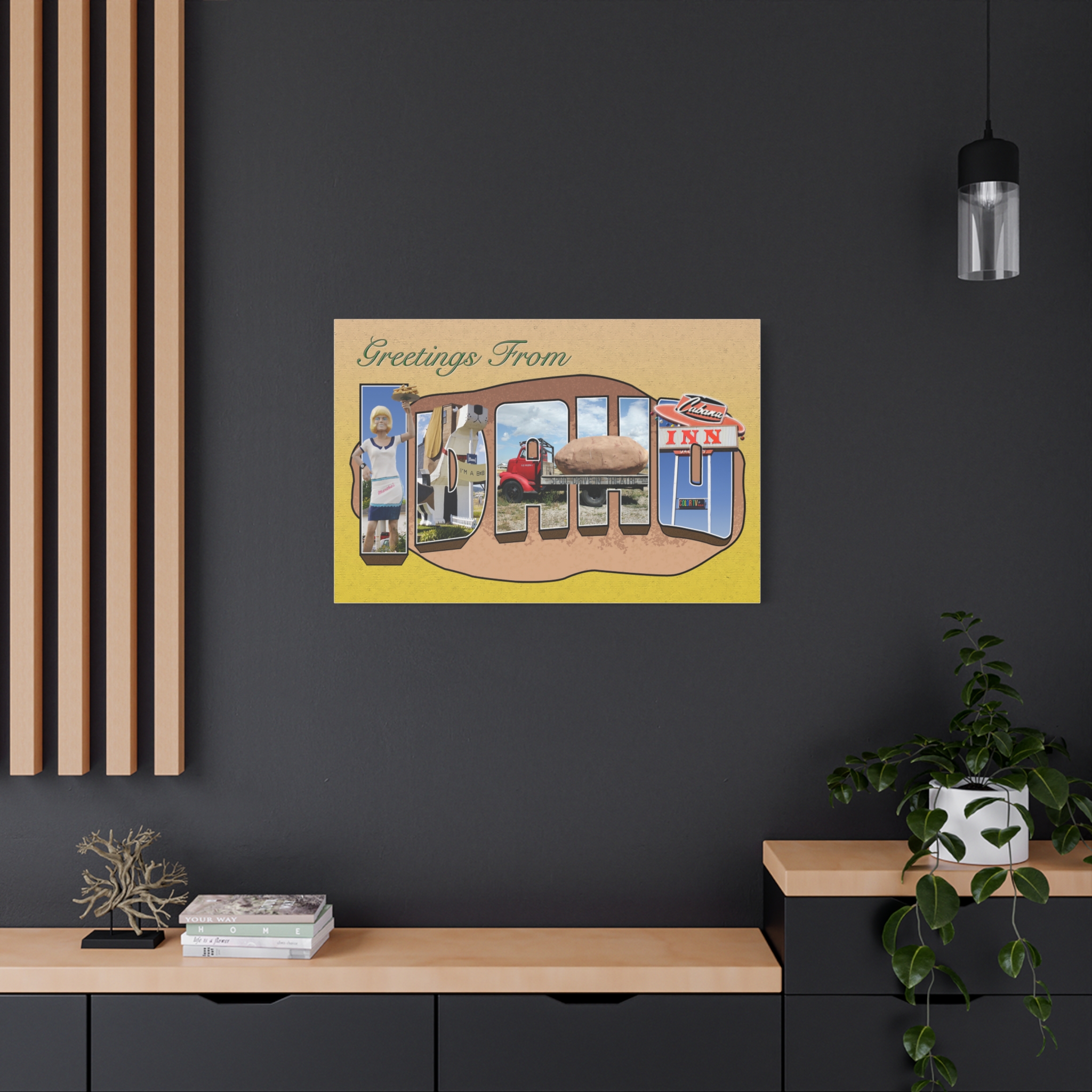 Greetings From Idaho Canvas Wall Art – Retro Vintage Postcard Design