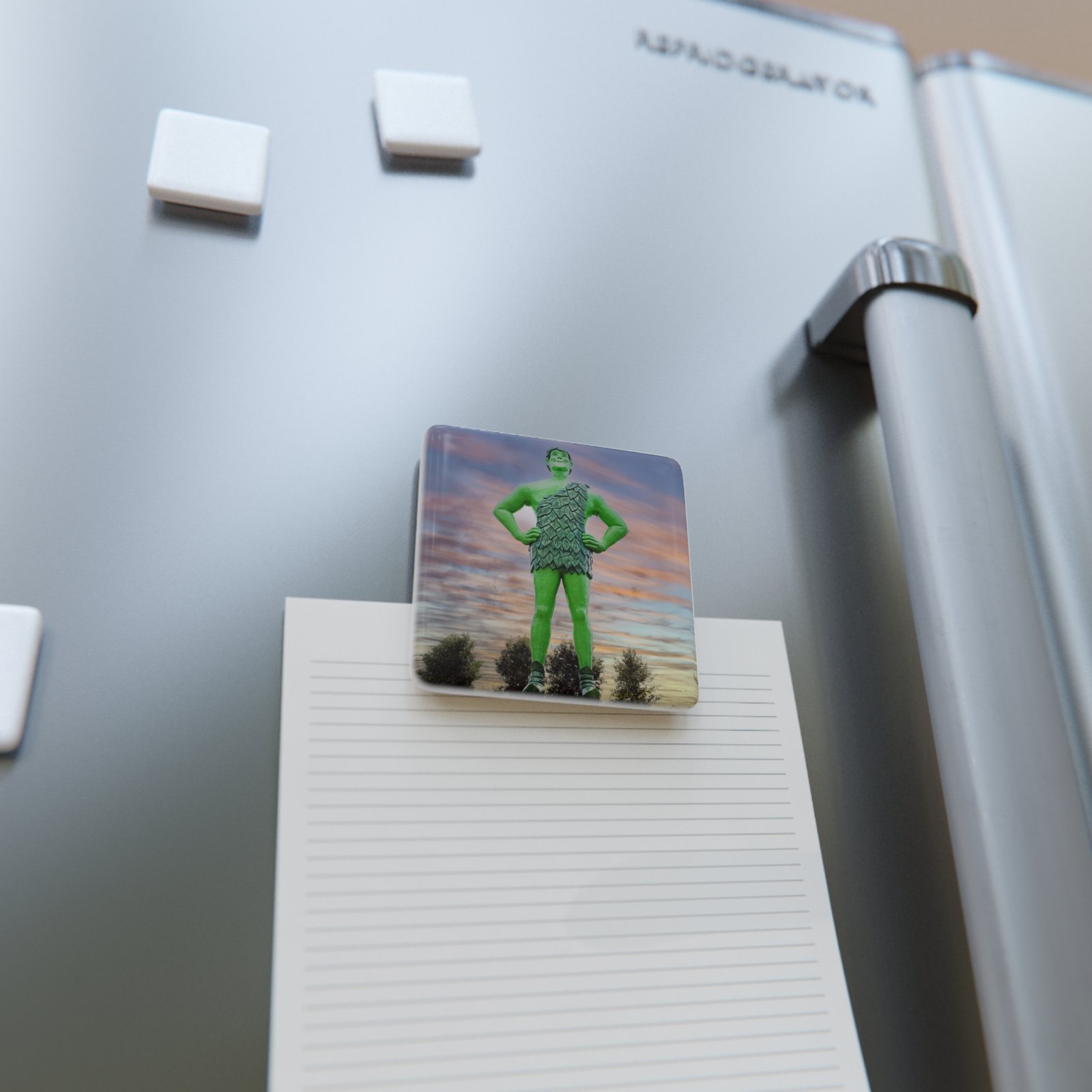 This 2″ porcelain magnet brings a slice of vintage diner charm to any magnetic surface. The square magnet features a Jolly Green Giant Statue rendered in bright, glossy colors that pop against the shiny porcelain. It feels nostalgic and playful like a roadside billboard or a lunchbox sticker rolled into a small, tangible keepsake. Stick it to a fridge, locker, or workspace to add a bit of kitschy humor and bold color to daily life. It sits low-profile but catches the eye, making ordinary moments feel a little more fun and distinctly retro.