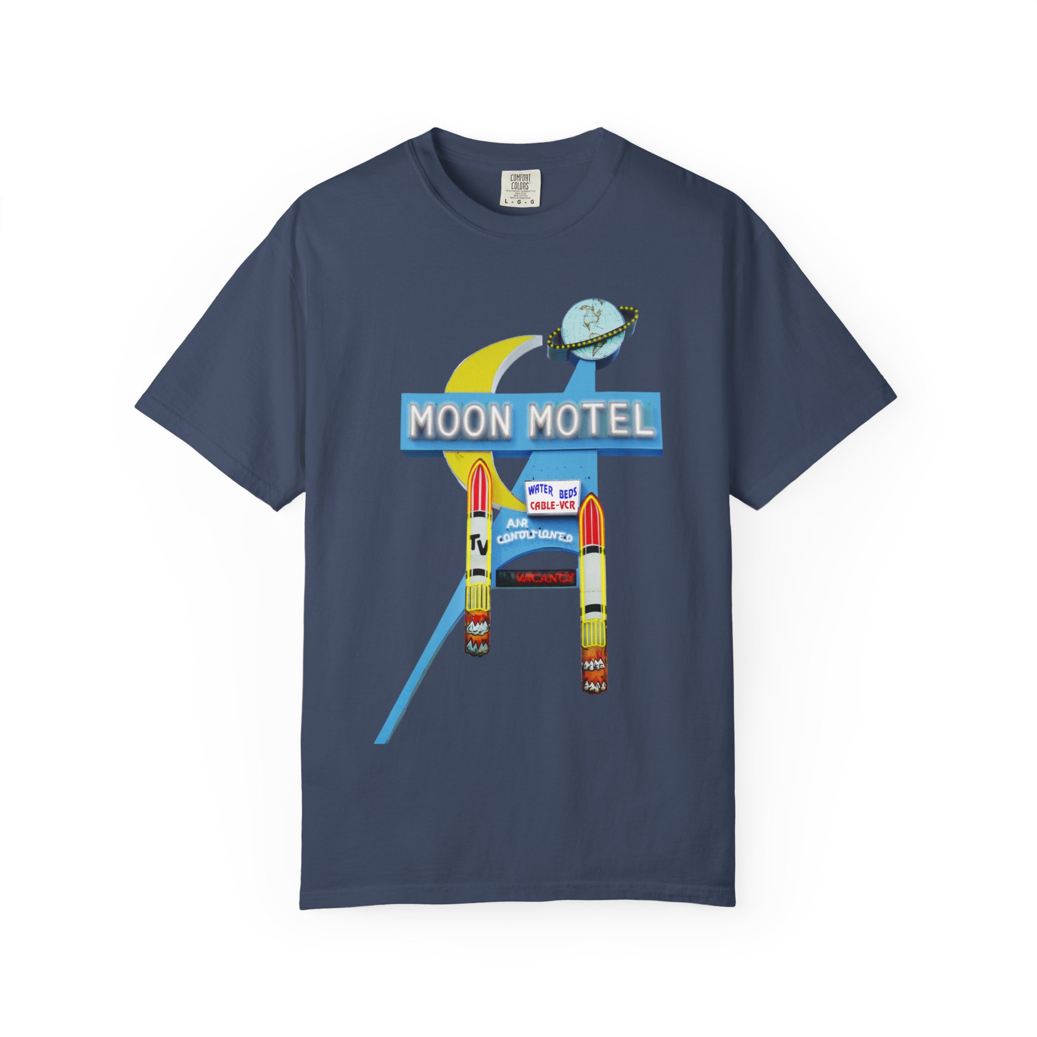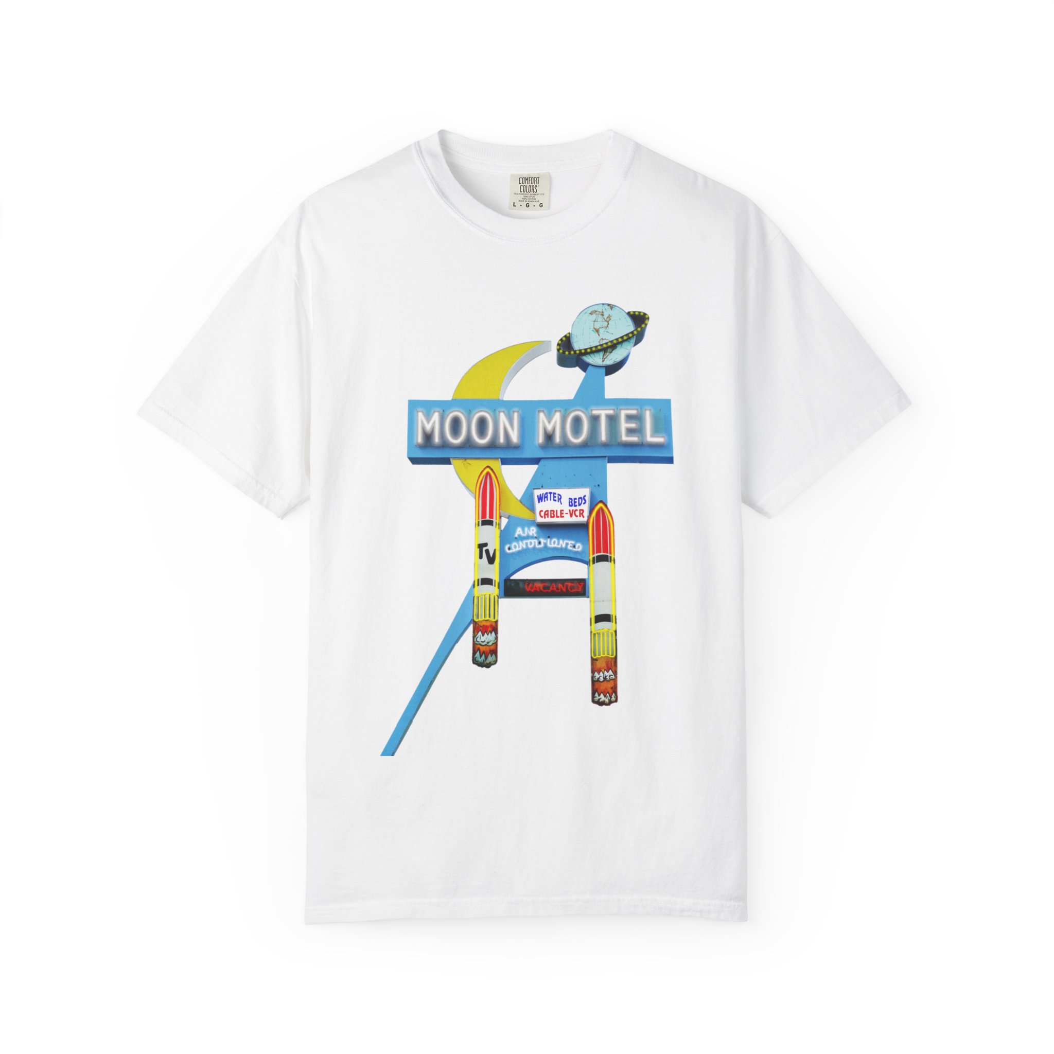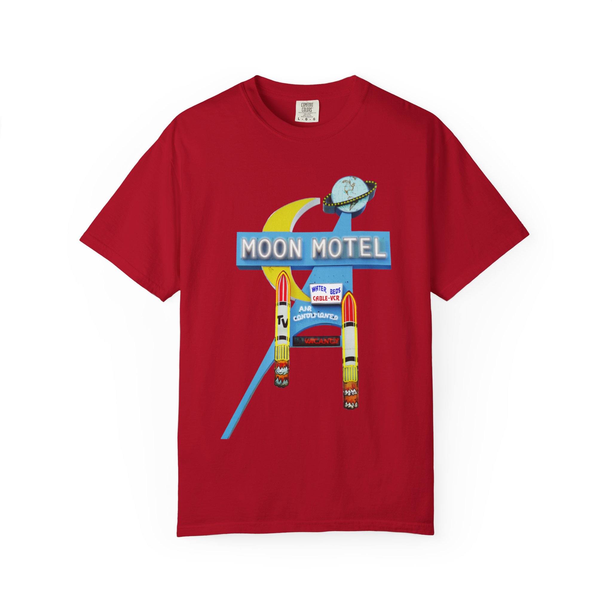 Be the first to review “Moon Motel Retro Sign Heavyweight T-Shirt — Vintage Neon Roadside Graphic”