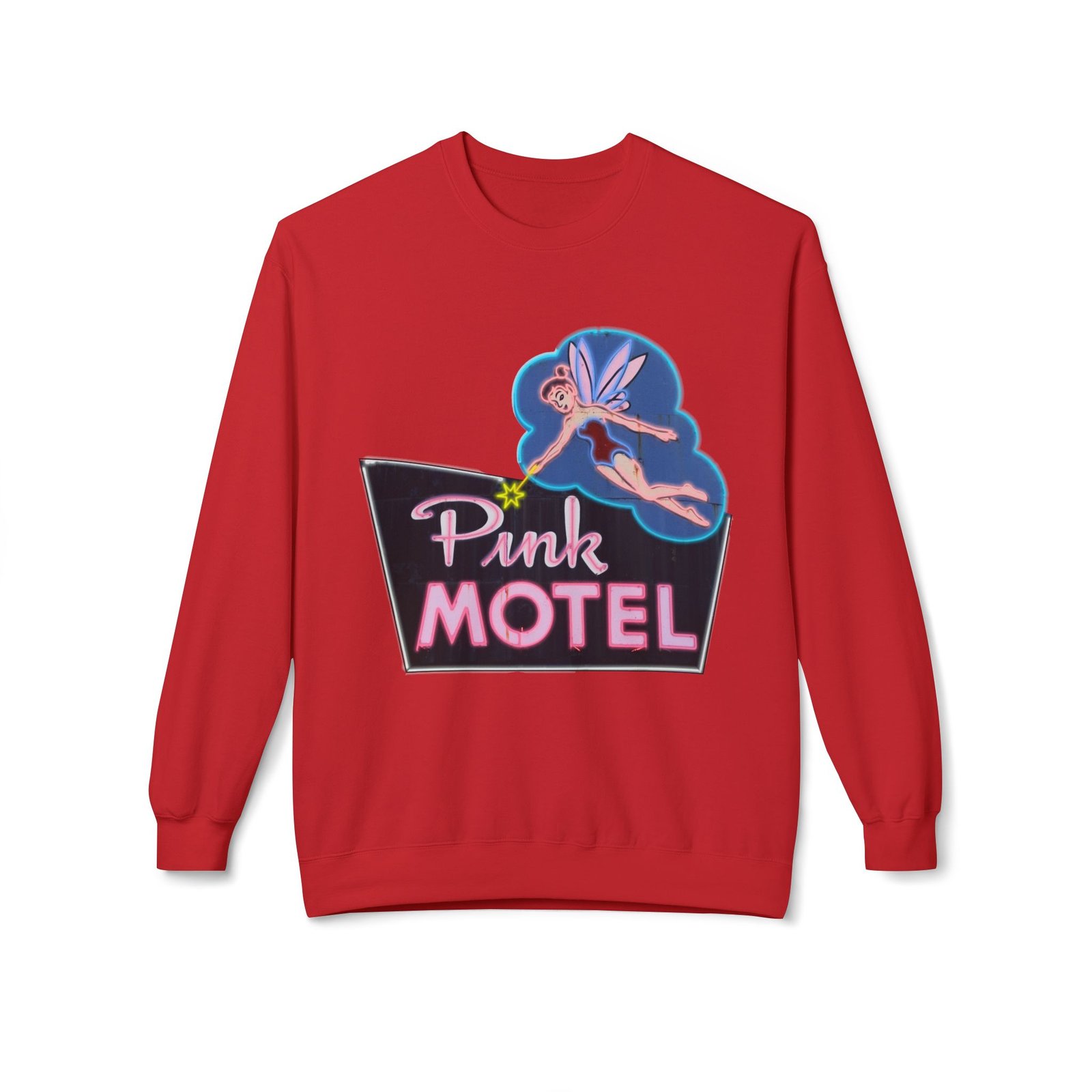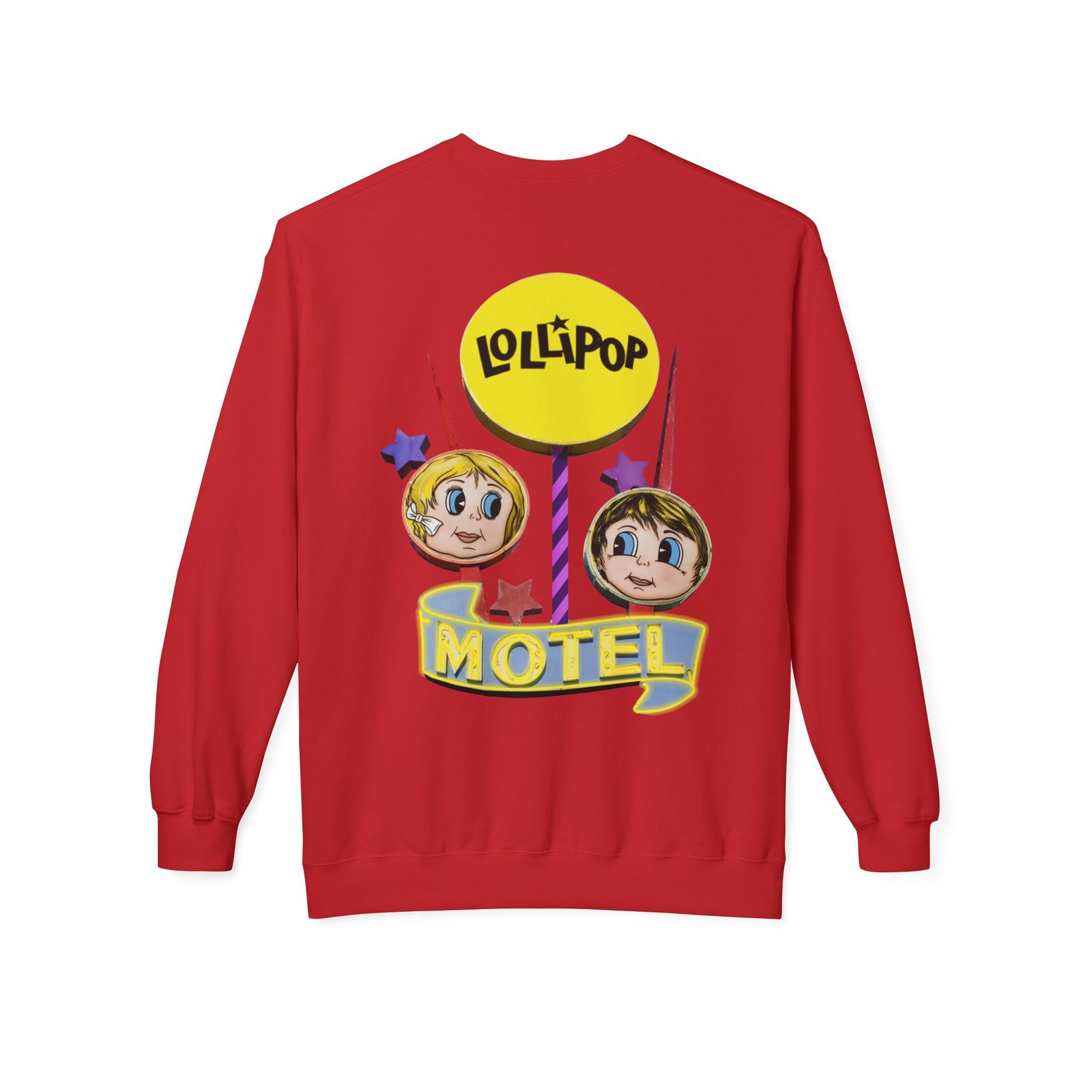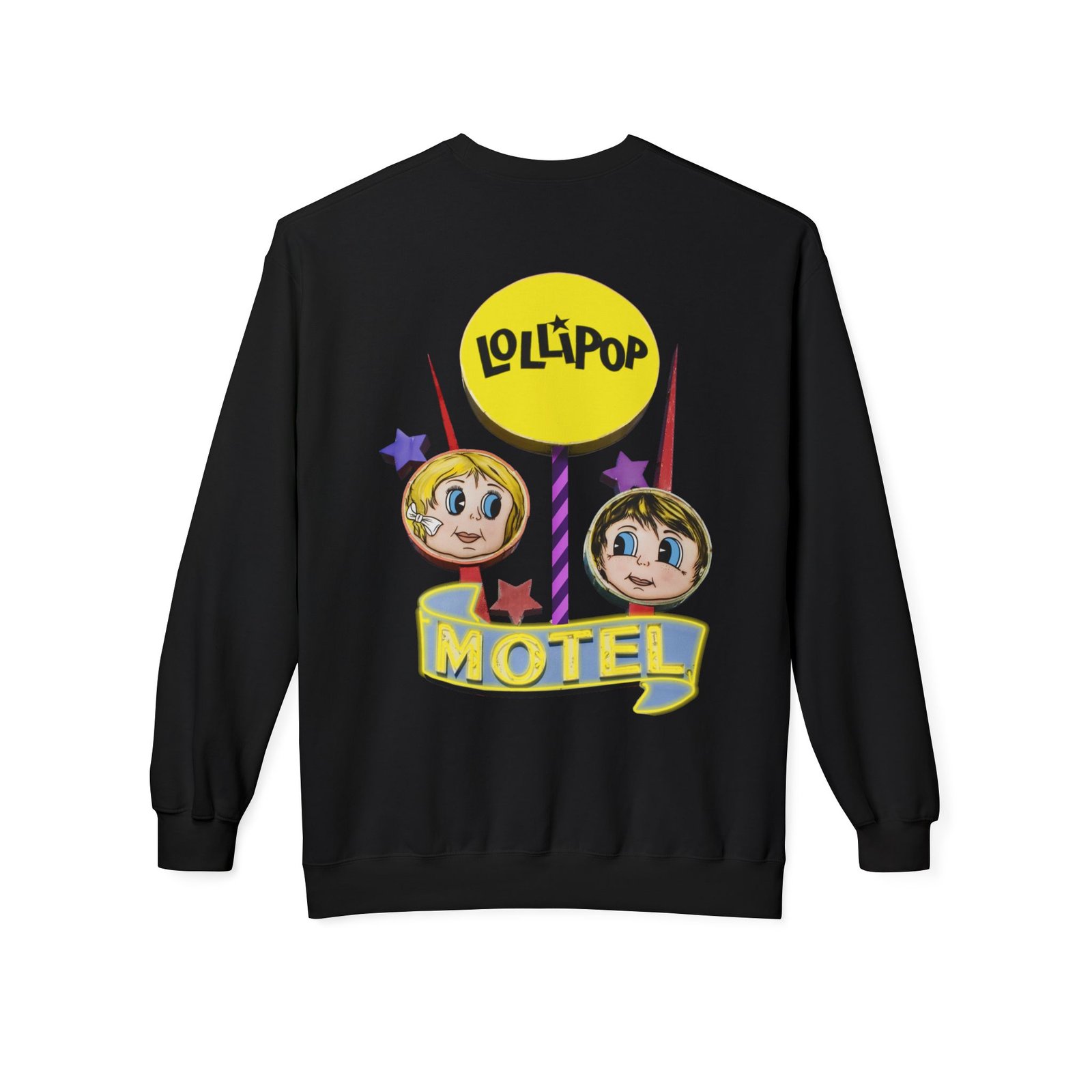 Pink Motel printed on the front and Lollipop Motel printed on the back. Want it reversed? Just let me know. This crewneck sweatshirt is perfect for those who love retro vibes and road trips. The unisex fleece design gives a relaxed fit and feel, making it a versatile piece for everyday wear. Ideal for adults looking for a comfortable and stylish sweatshirt to wear during casual outings or cozy nights at home. Perfect for gifting on birthdays, holidays, or special occasions.