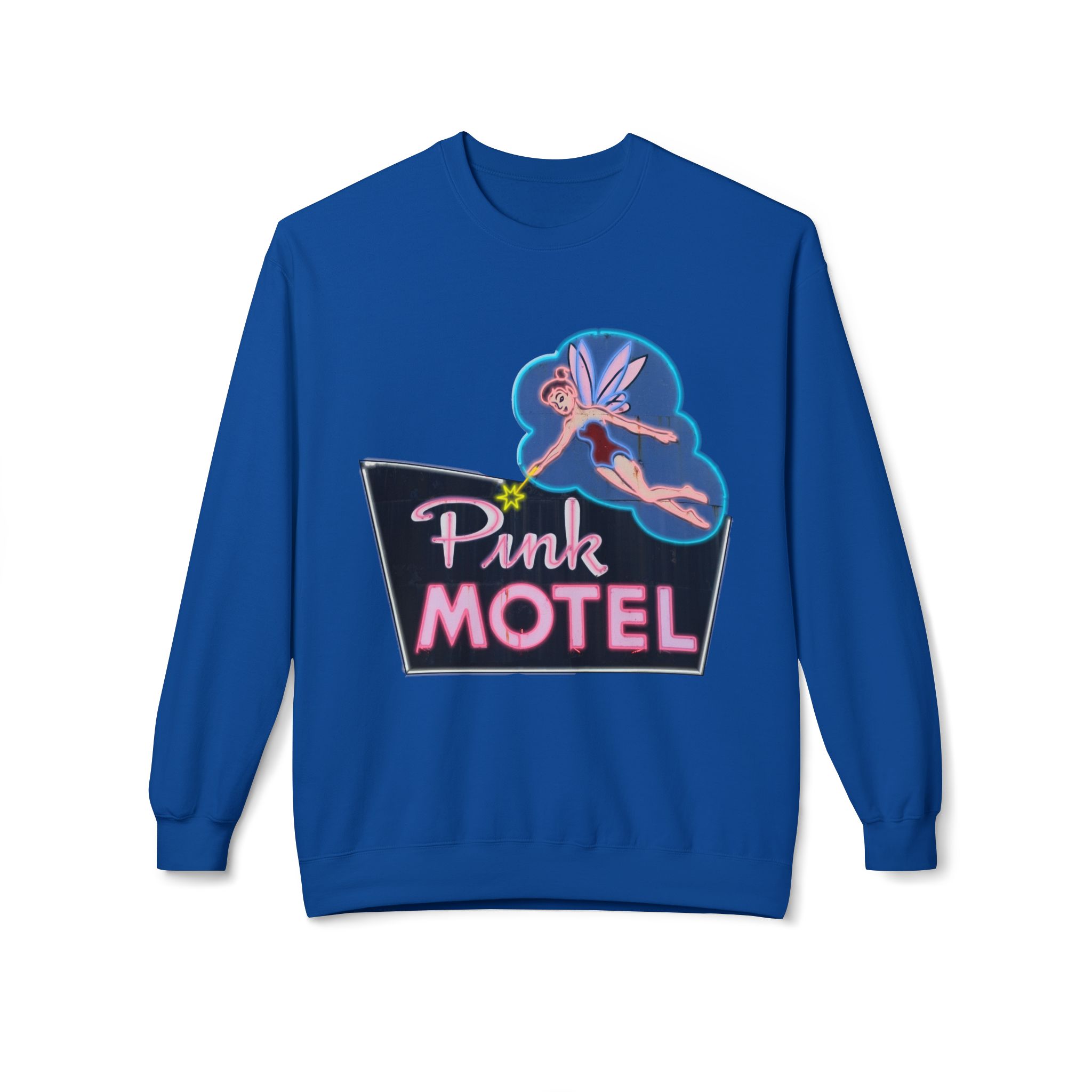 The Pink Motel crewneck sweatshirt is perfect for those who love retro vibes and road trips. The unisex fleece design gives a relaxed fit and feel, making it a versatile piece for everyday wear. Ideal for adults looking for a comfortable and stylish sweatshirt to wear during casual outings or cozy nights at home. Perfect for gifting on birthdays, holidays, or special occasions.