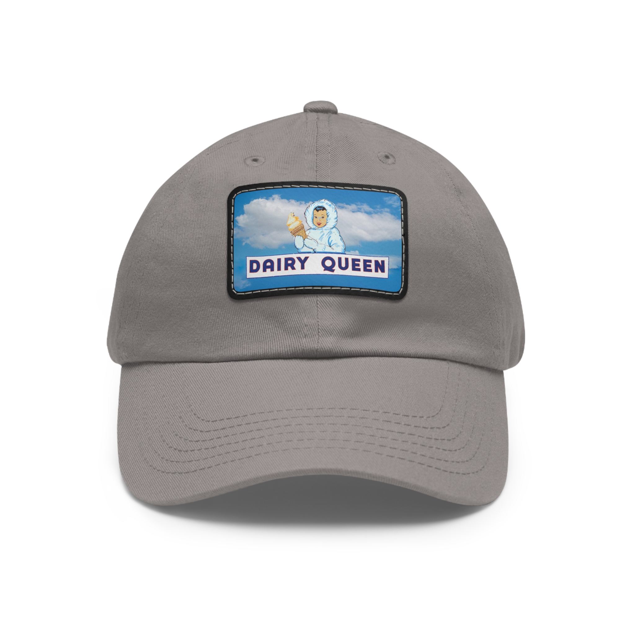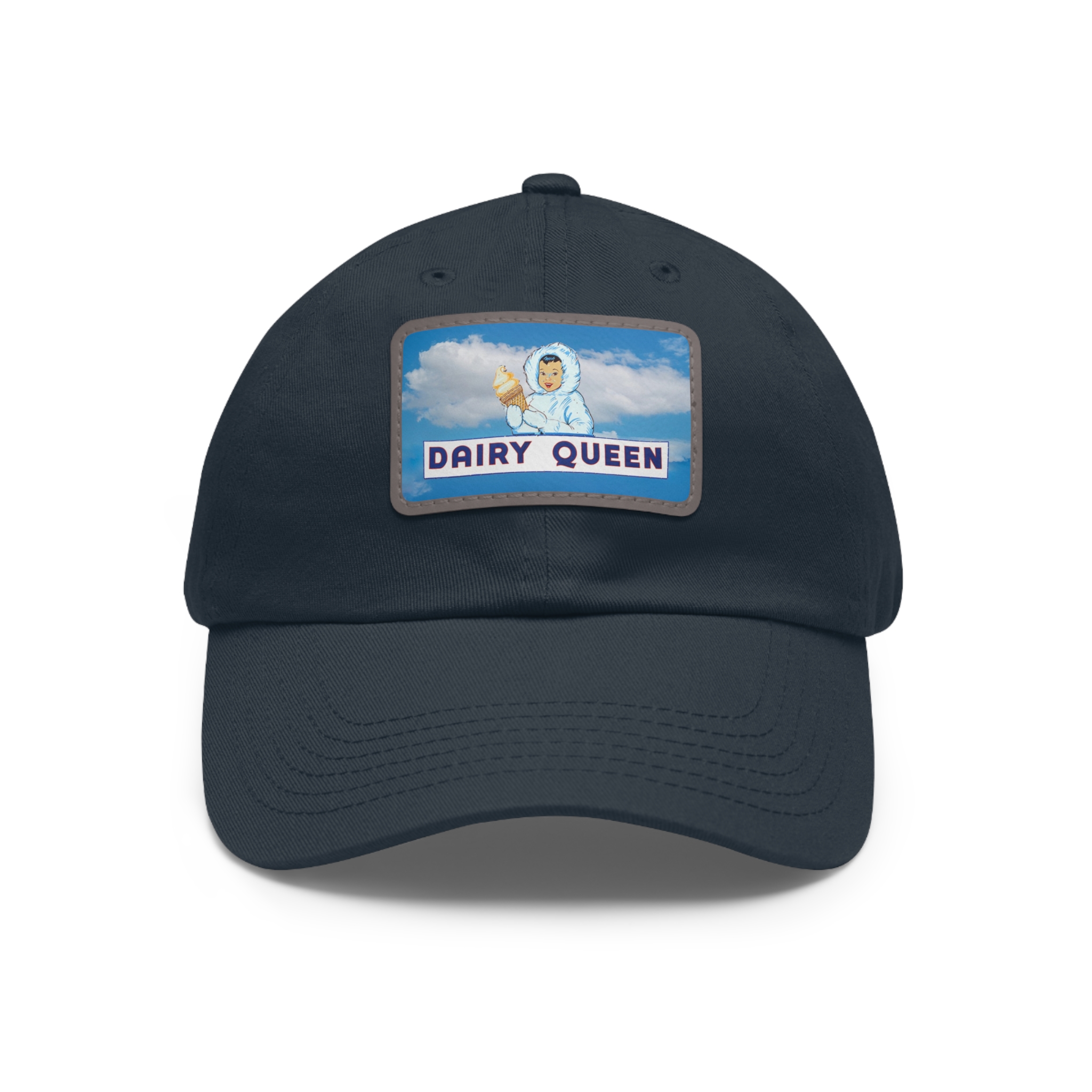 This low-profile dad hat channels vintage roadside charm. The leather rectangle patch echoes a retro Dairy Queen-inspired Eskimo sign — weathered, nostalgic, and quietly bold. Decorative stitching frames the patch like old signage, giving the cap a handcrafted, well-loved look. Wear it on slow drives to the coast, at weekend farmers’ markets, or tucked into a jacket on chilly evenings; it settles into outfits with easy confidence and a subtle nod to mid-century Americana. The chino twill keeps the hat soft and broken-in, while the antique-brass buckle closure adds a touch of refined age. It’s for people who collect small, storied pieces — accessories that carry memory and a worn-in aesthetic rather than shouting for attention.