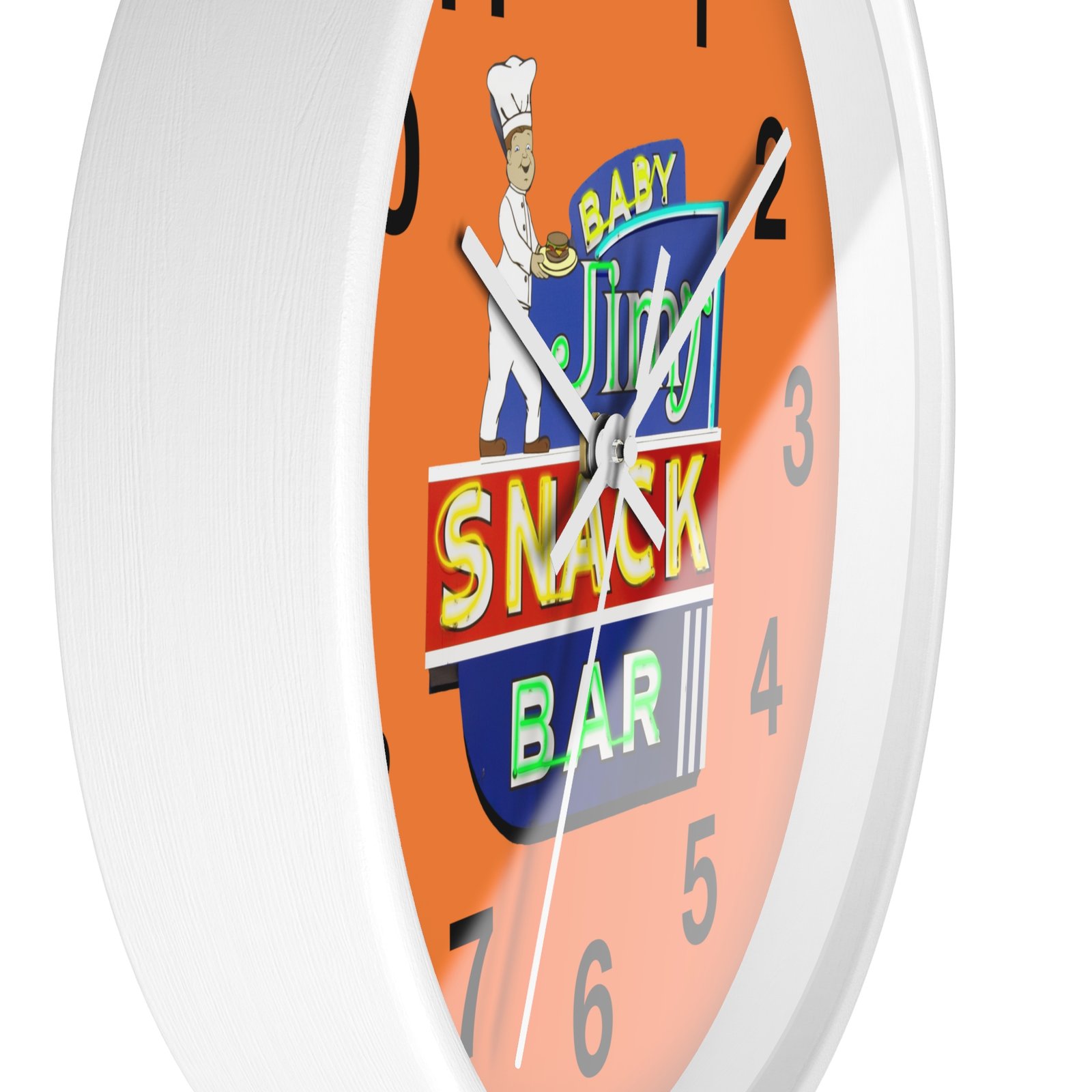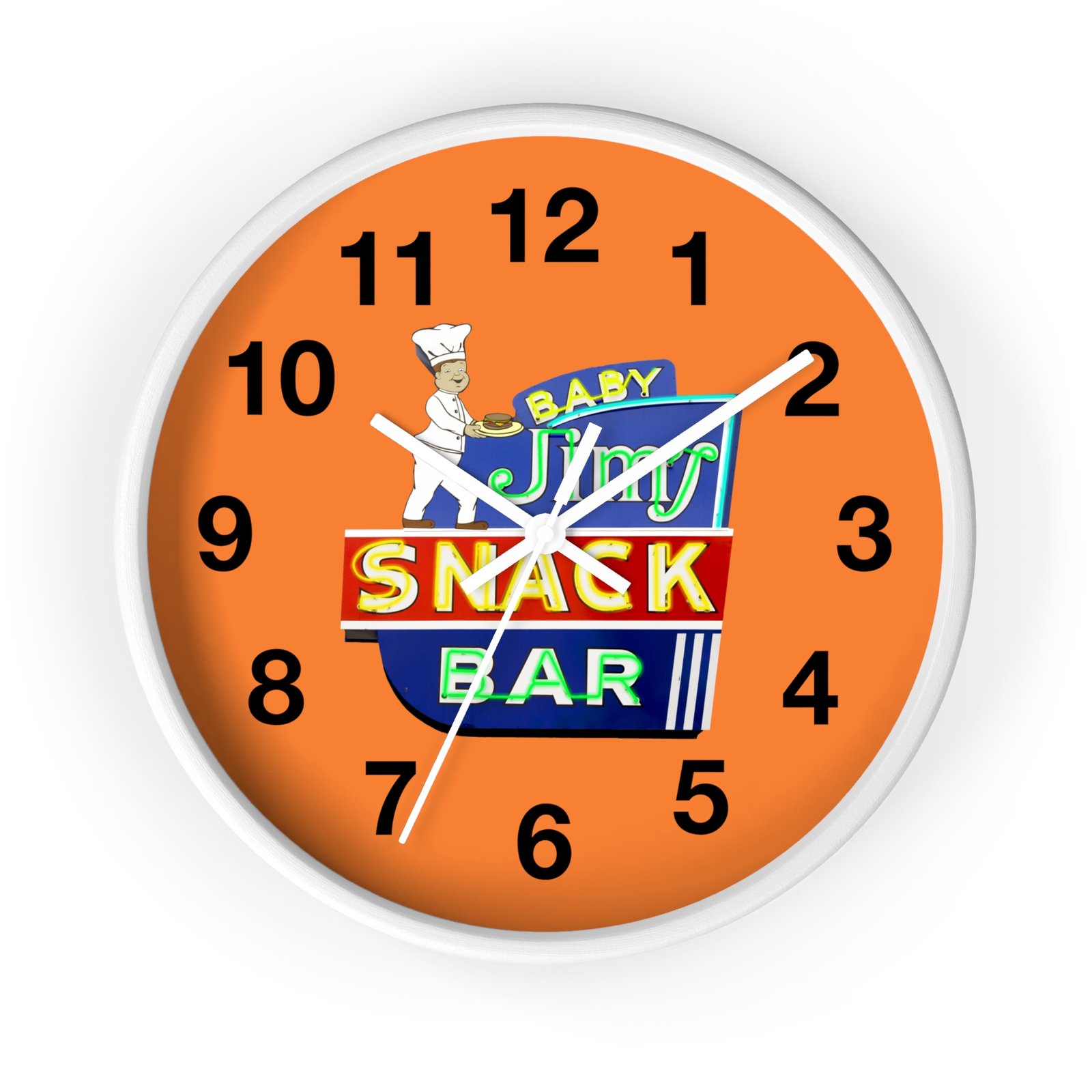 Baby Jim’s Snack Bar Wall Clock is a charming addition to any kitchen or dining room. The vibrant colors and cute design create a cozy and nostalgic atmosphere. Perfect for parents with young children or anyone who loves a retro diner vibe. Ideal for decorating during family gatherings, birthdays, or casual get-togethers.