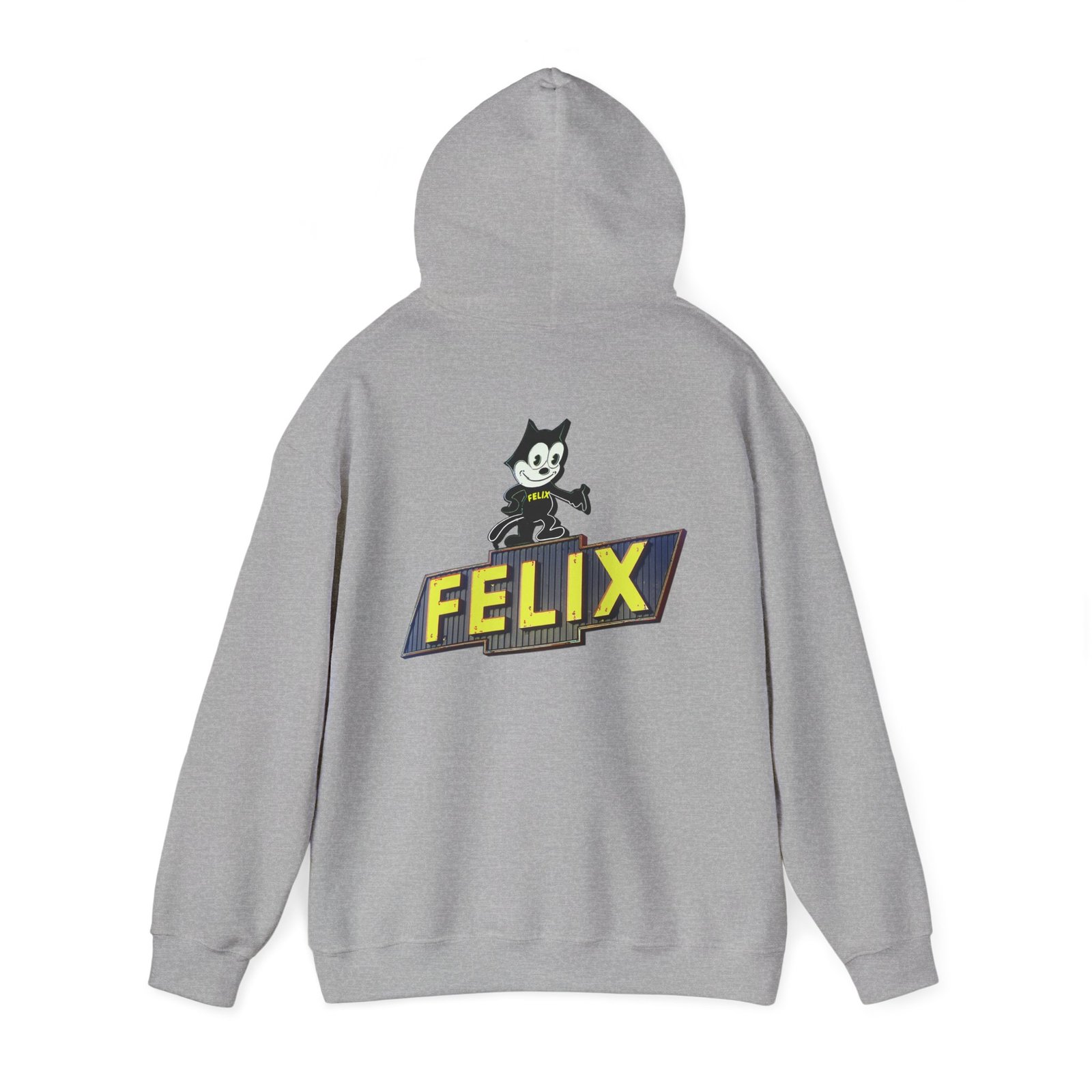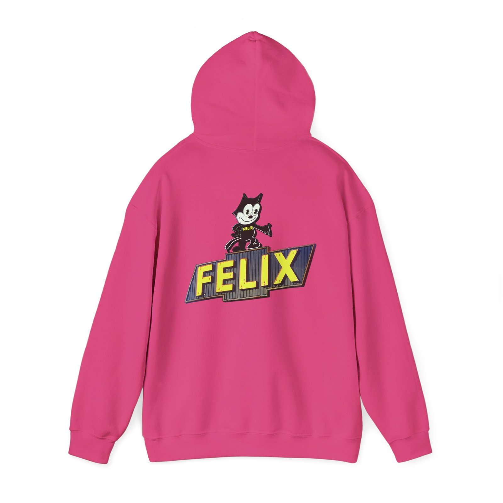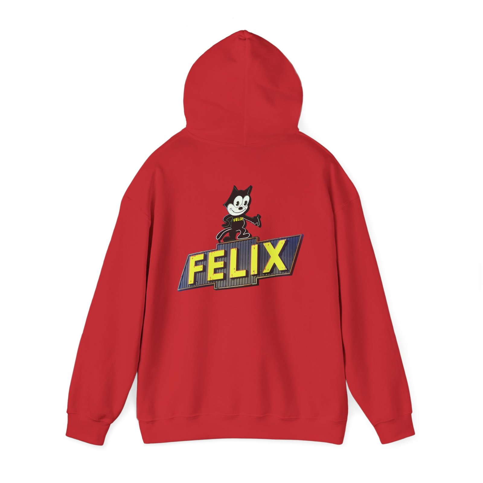 This Retro Felix Cat Hoodie is a funny and trendy sweatshirt perfect for gifting. The back side is printed with a unique design, giving off a nostalgic vibe.