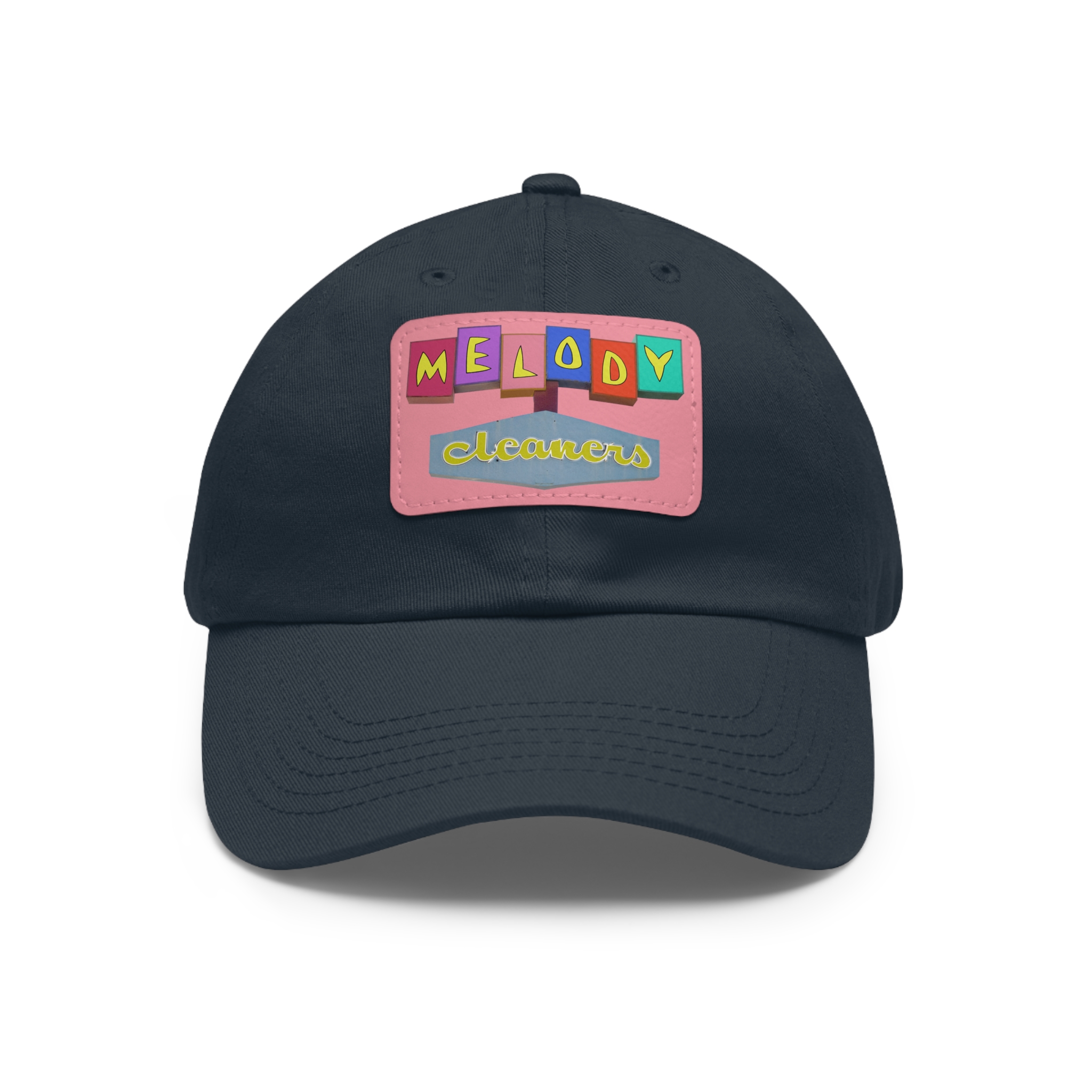 Retro Melody Cleaners Neon Sign Stylish Hat with Leather Patch, Trendy Accessories. This Dad Hat gives off a retro and stylish vibe, perfect for casual outings or adding a trendy touch to your wardrobe. Relevant for fashion-forward individuals looking for unique accessories. Great for Father’s Day gifts, summer outings, and music festivals.