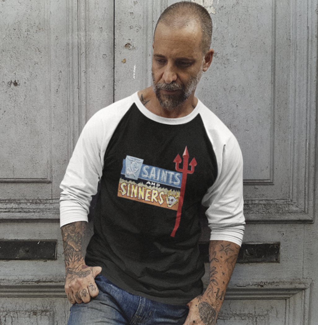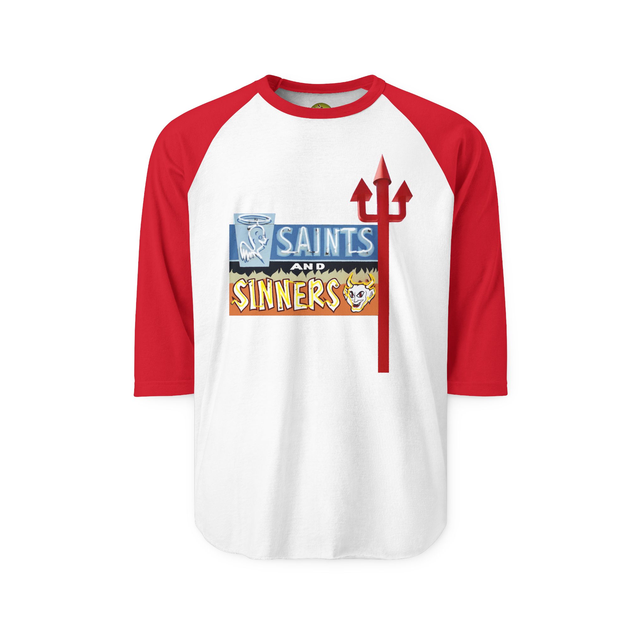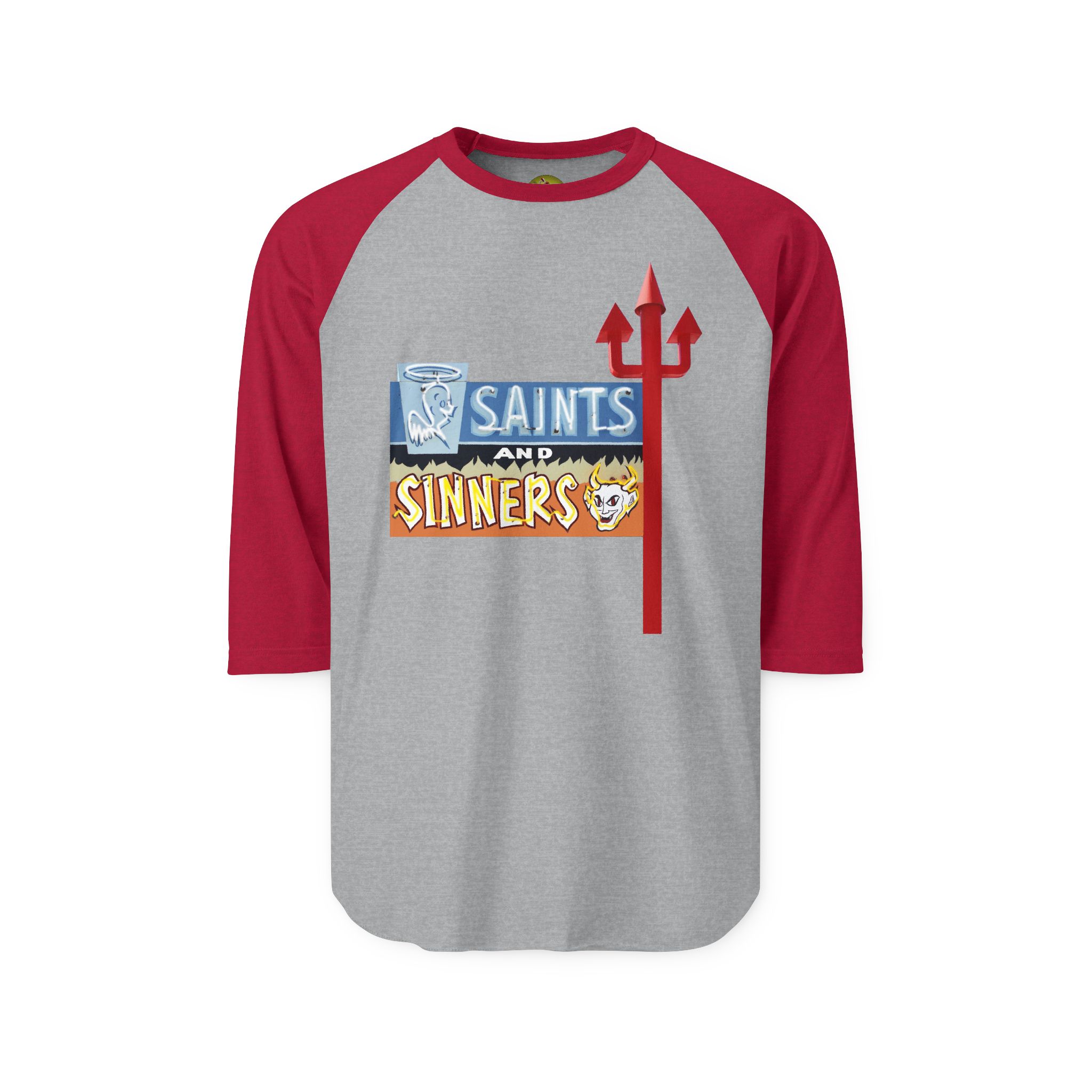 Saints & Sinners Raglan Shirt, Vintage Style Tee, Unisex Casual Wear
