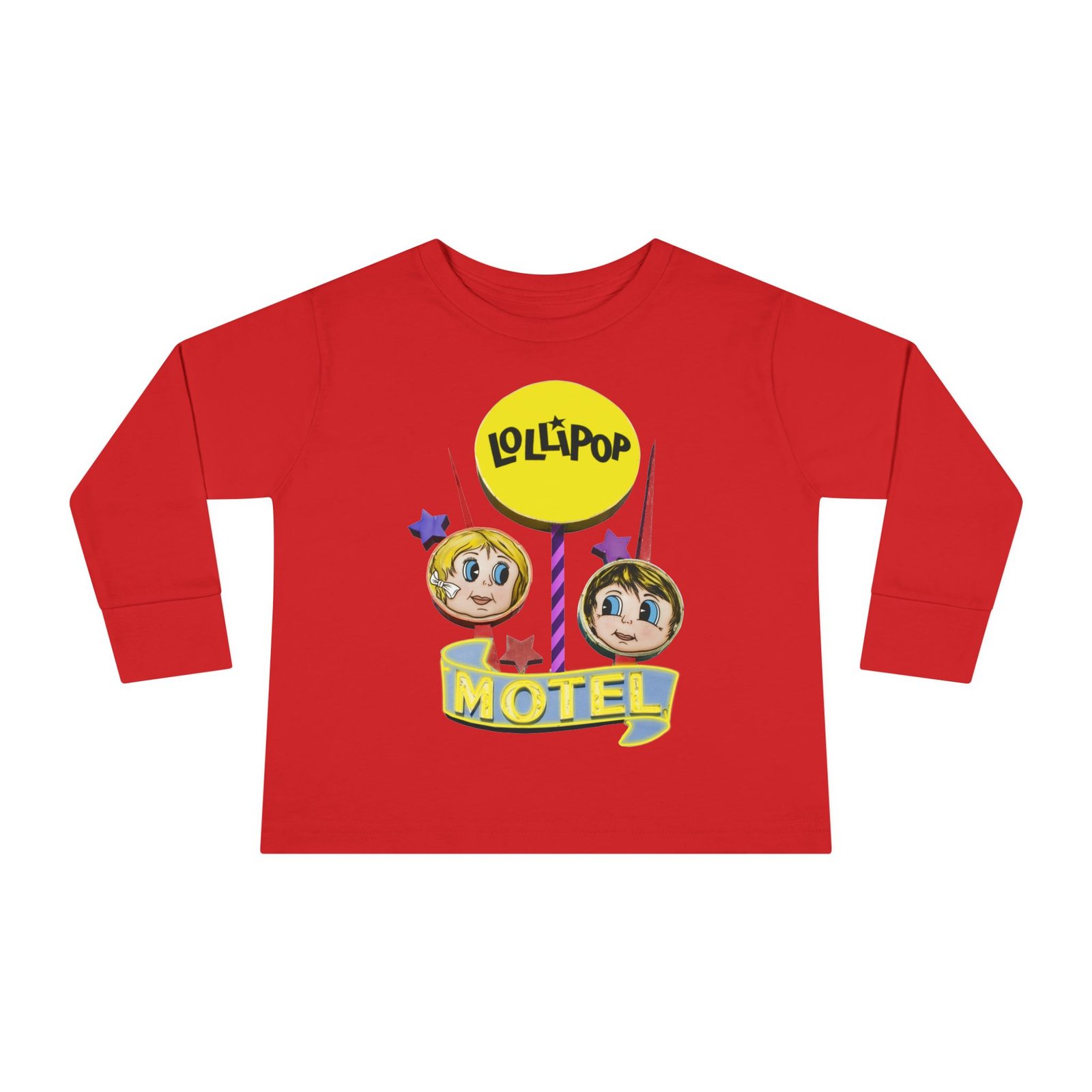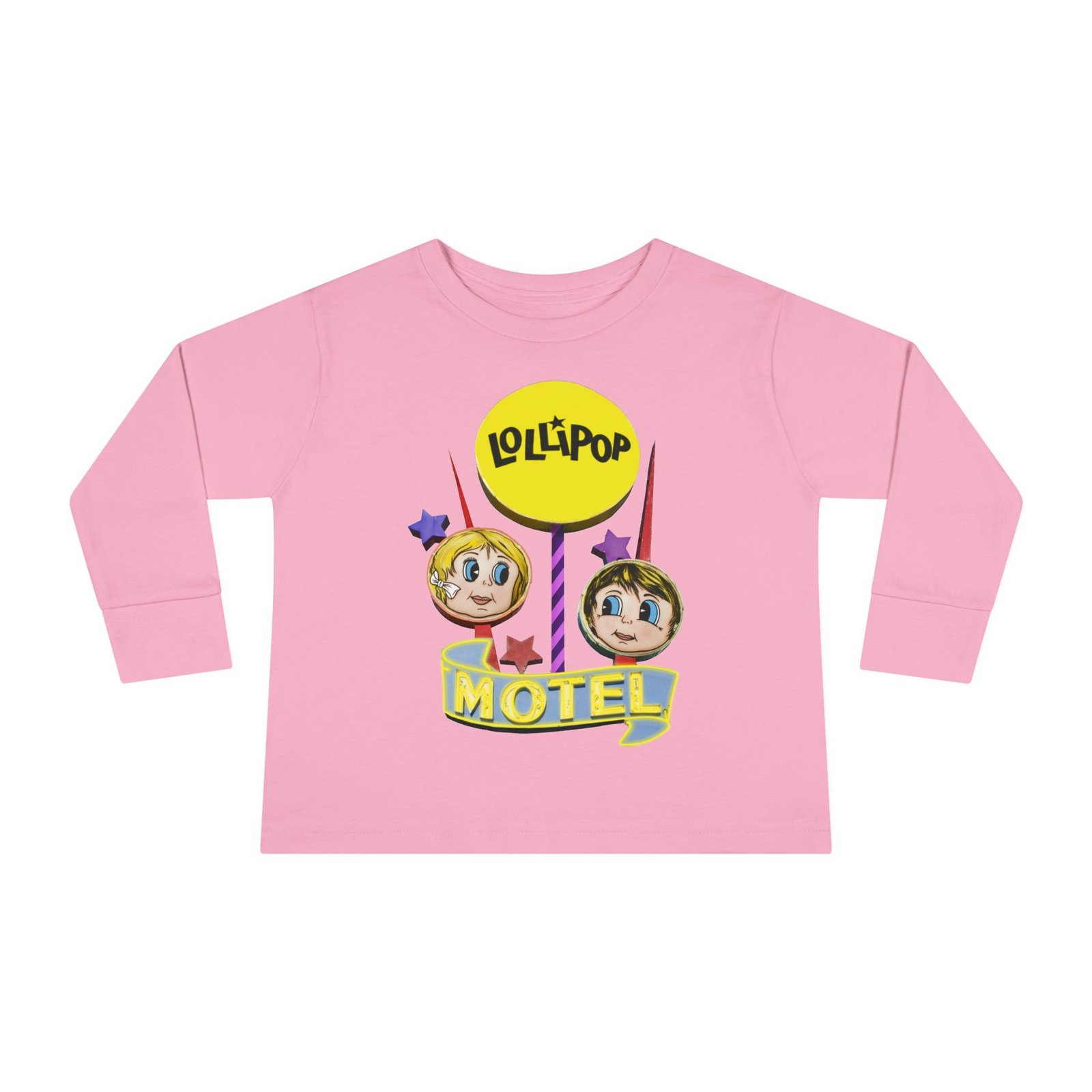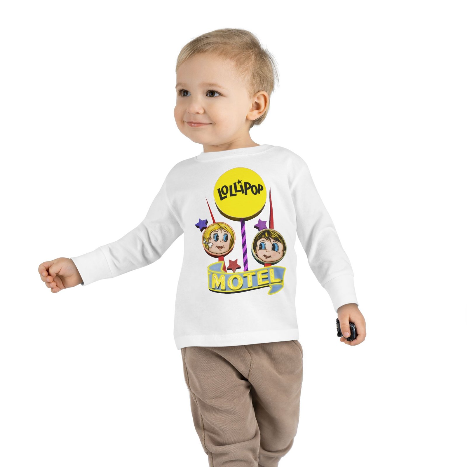 Toddler Long Sleeve Tee with Retro Lollipop Motel Design, Kids Casual Top