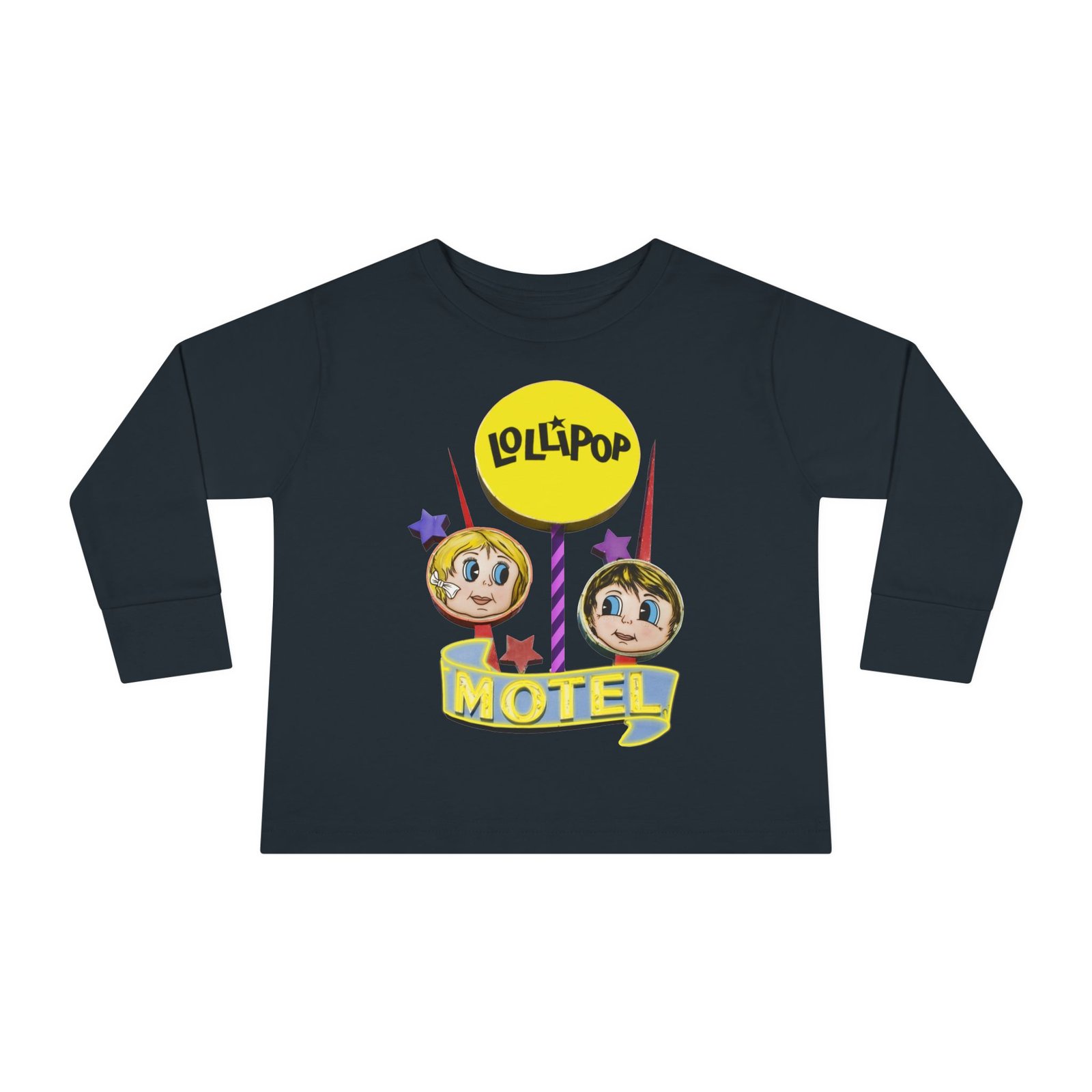 Be the first to review “Toddler Long Sleeve Tee with Retro Lollipop Motel Design, Kids Casual Top”