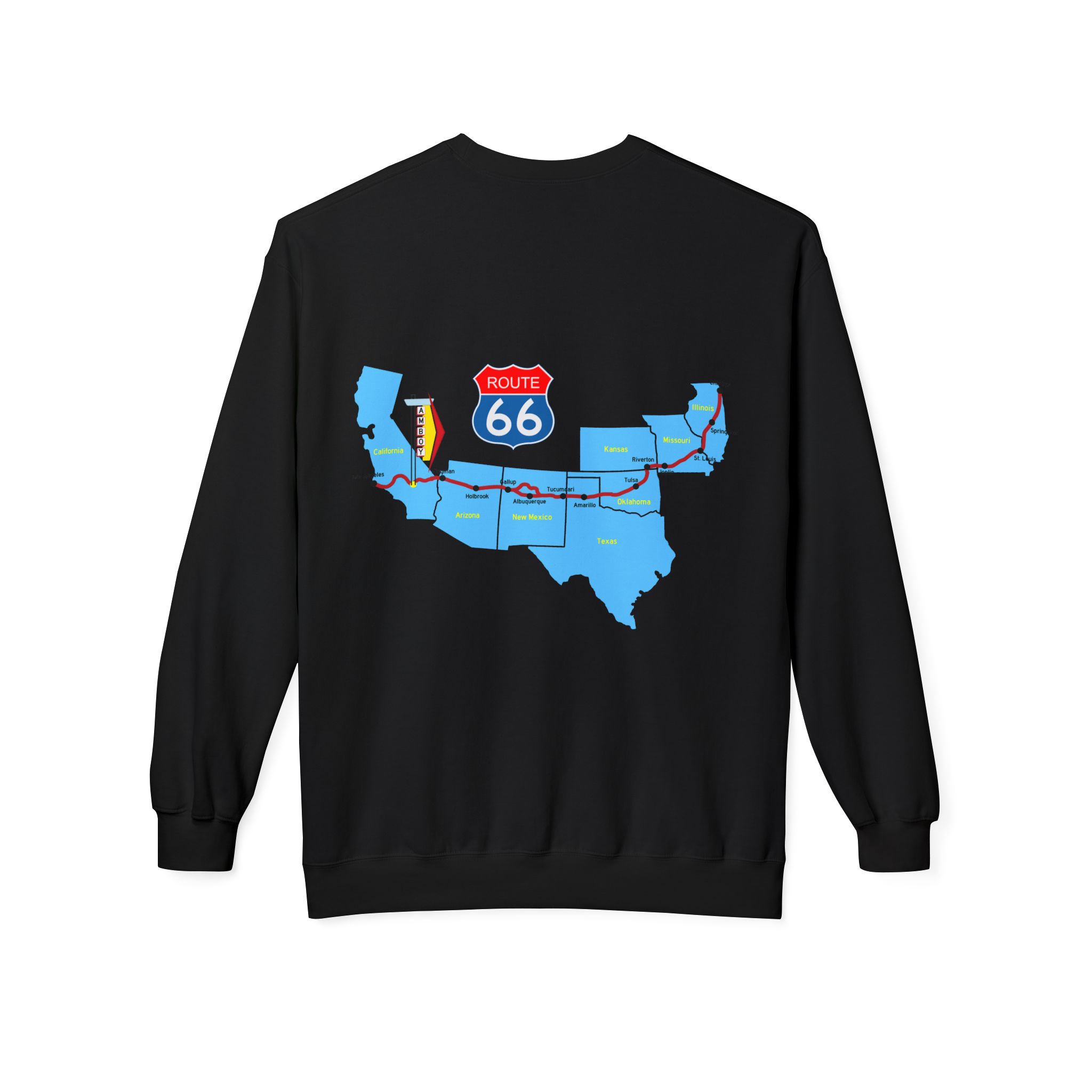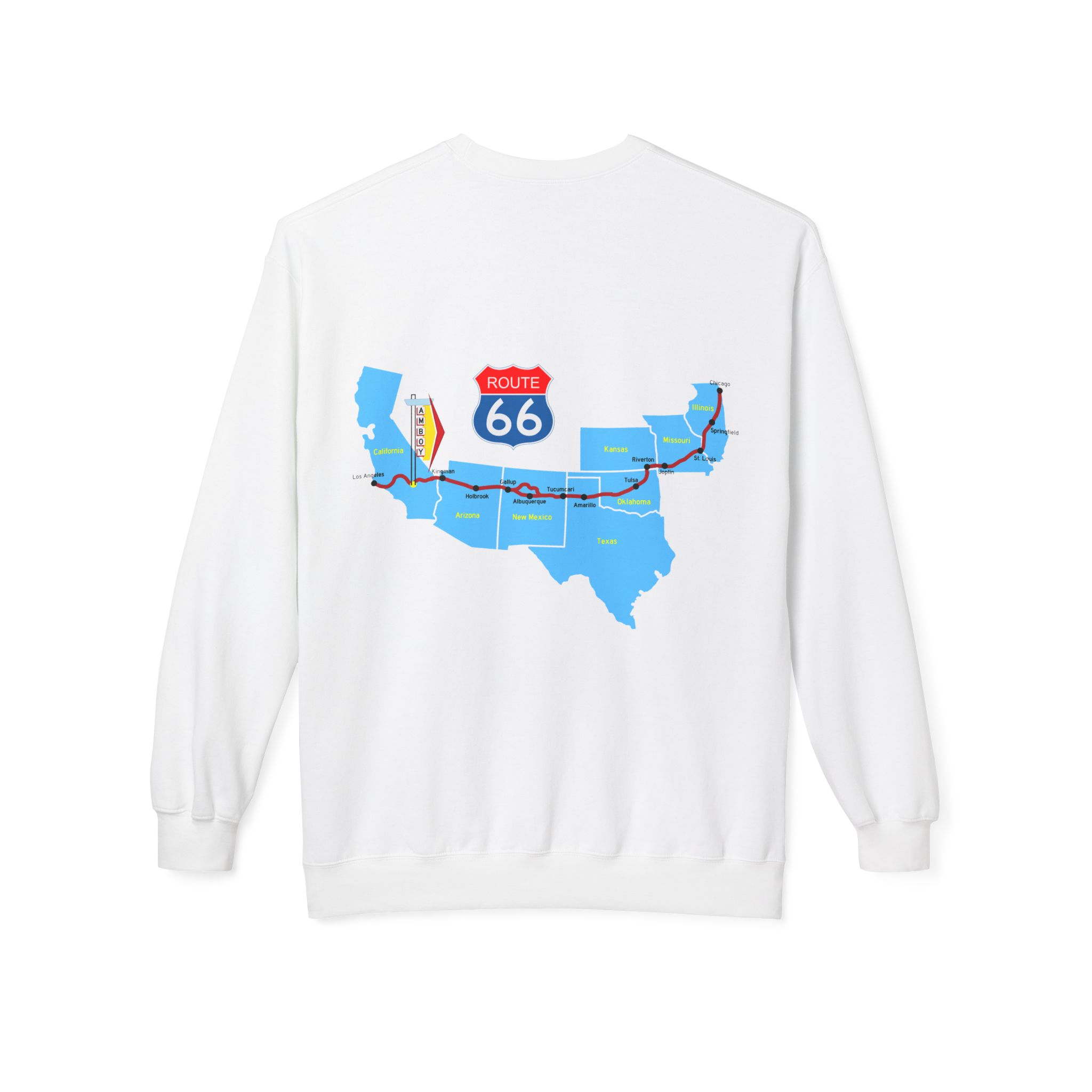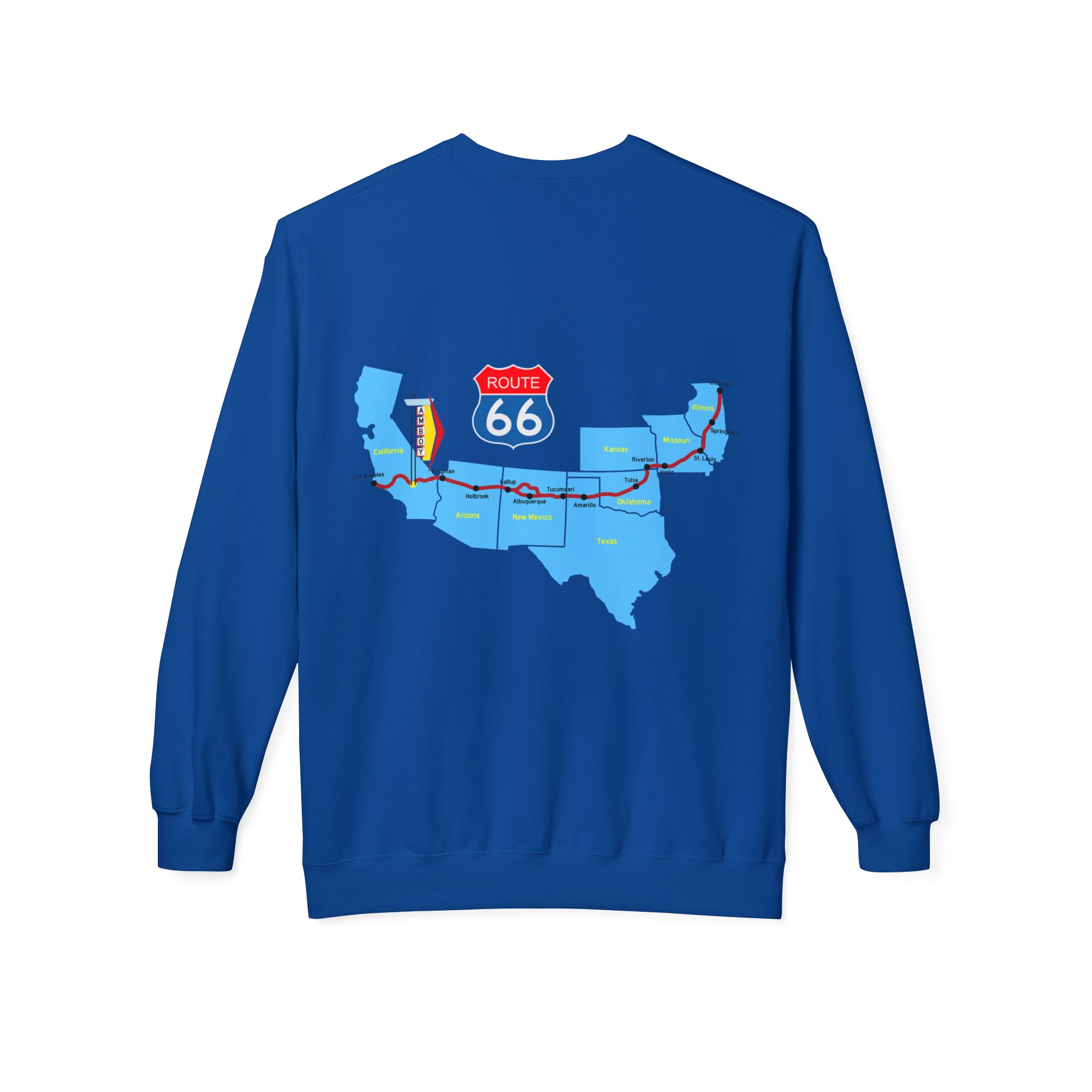 Vintage Route 66 Crewneck Sweatshirt, Retro Road Trip Jumper, Unisex Fleece