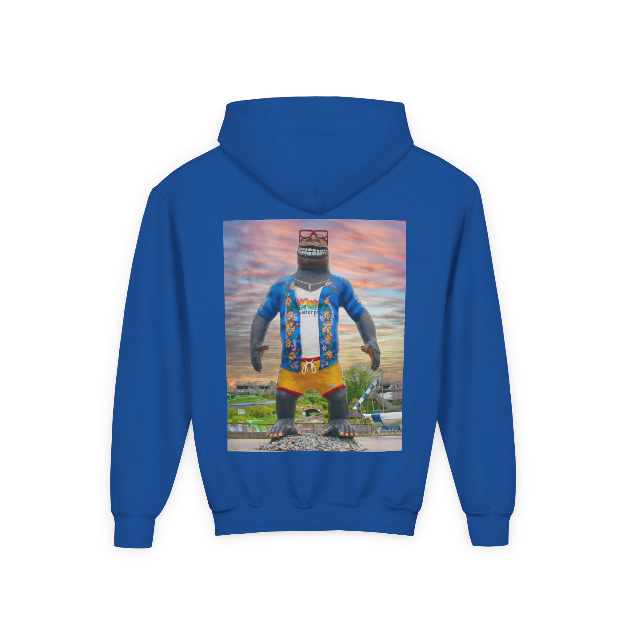 Youth Hooded Sweatshirt, Giant Beach Gorilla Vibe, Back Side Printed, Travel Casual Wear